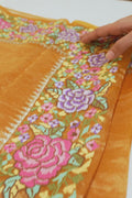 Light Yellow with Petit-Point Embroidered Border Pure Glass Tissue Kora Silk Saree