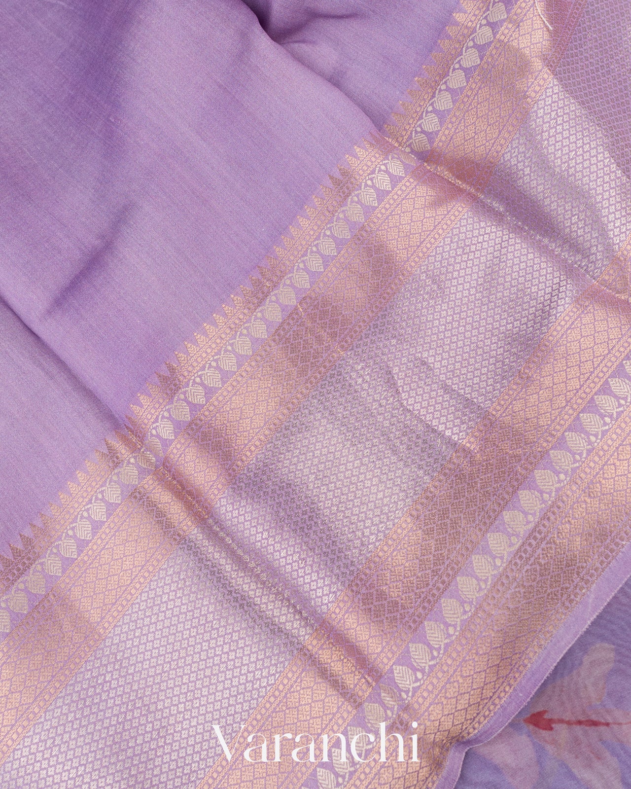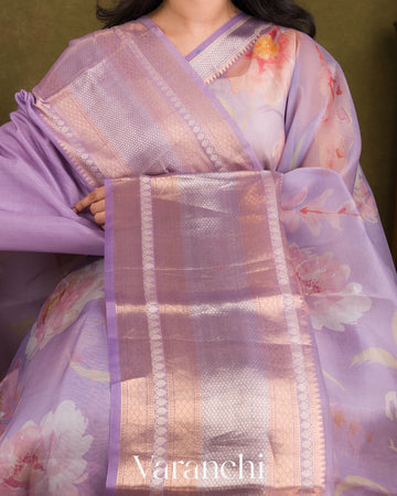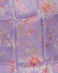 Lilac Floral Printed Pure Kora Silk Saree