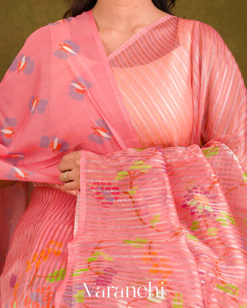 Lotus Pink Floral Printed Pure Chanderi Silk Cotton Saree