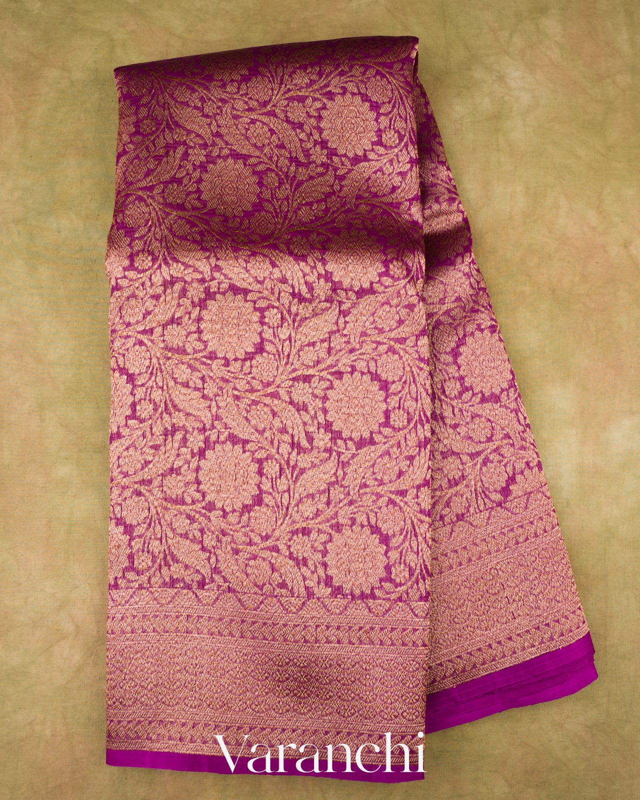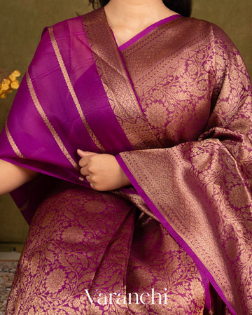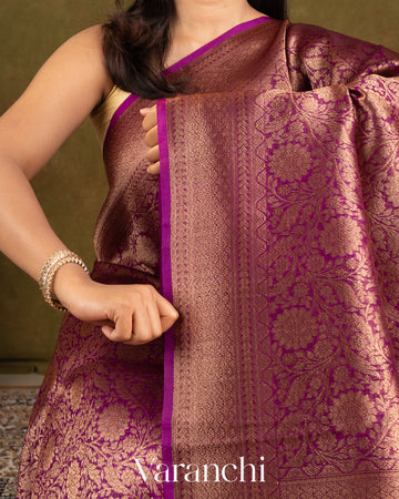 Magenta Heavy Brocade Pure Kora Silk Handloom Saree