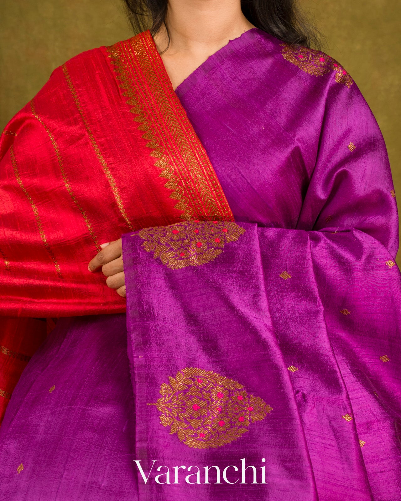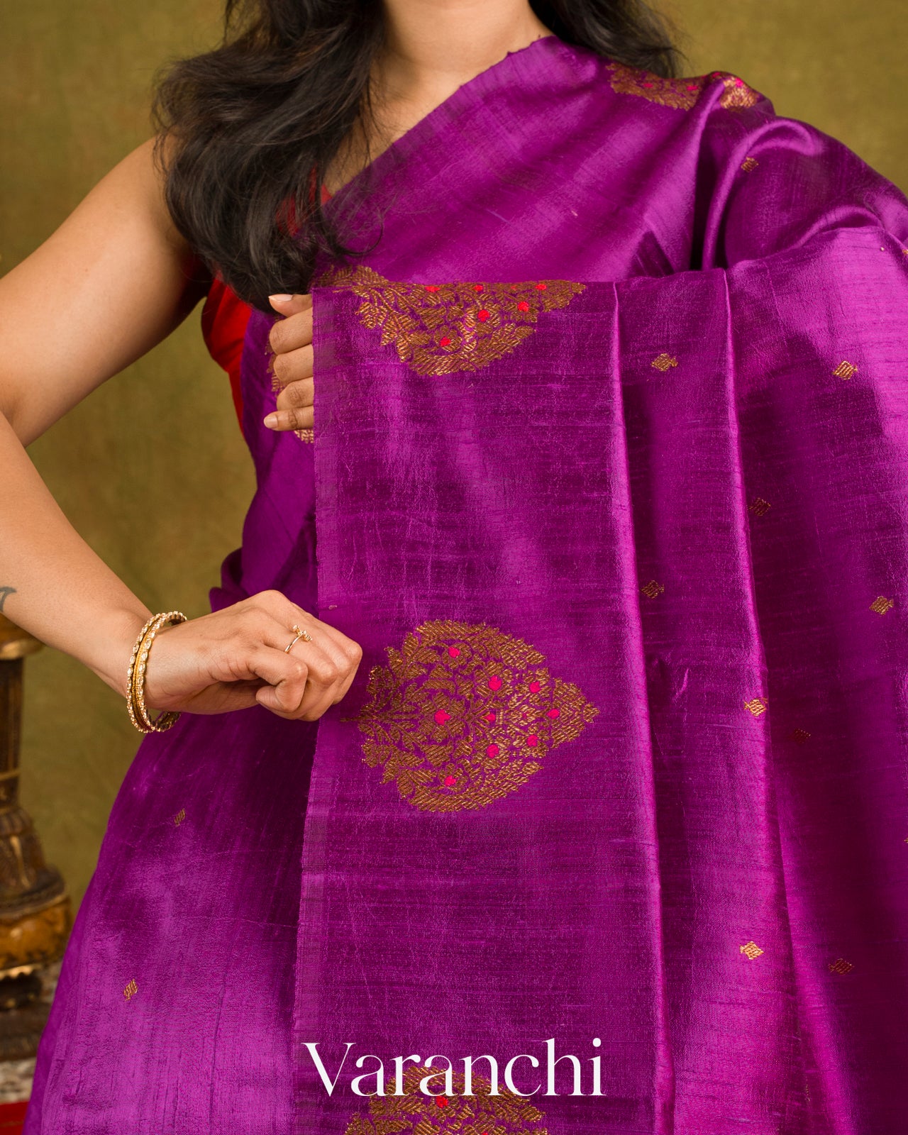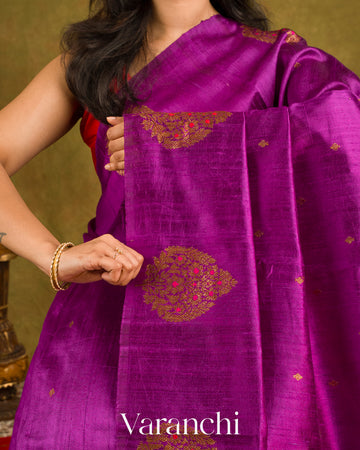 Magenta Purple Borderless Pure Raw Silk Handloom Saree