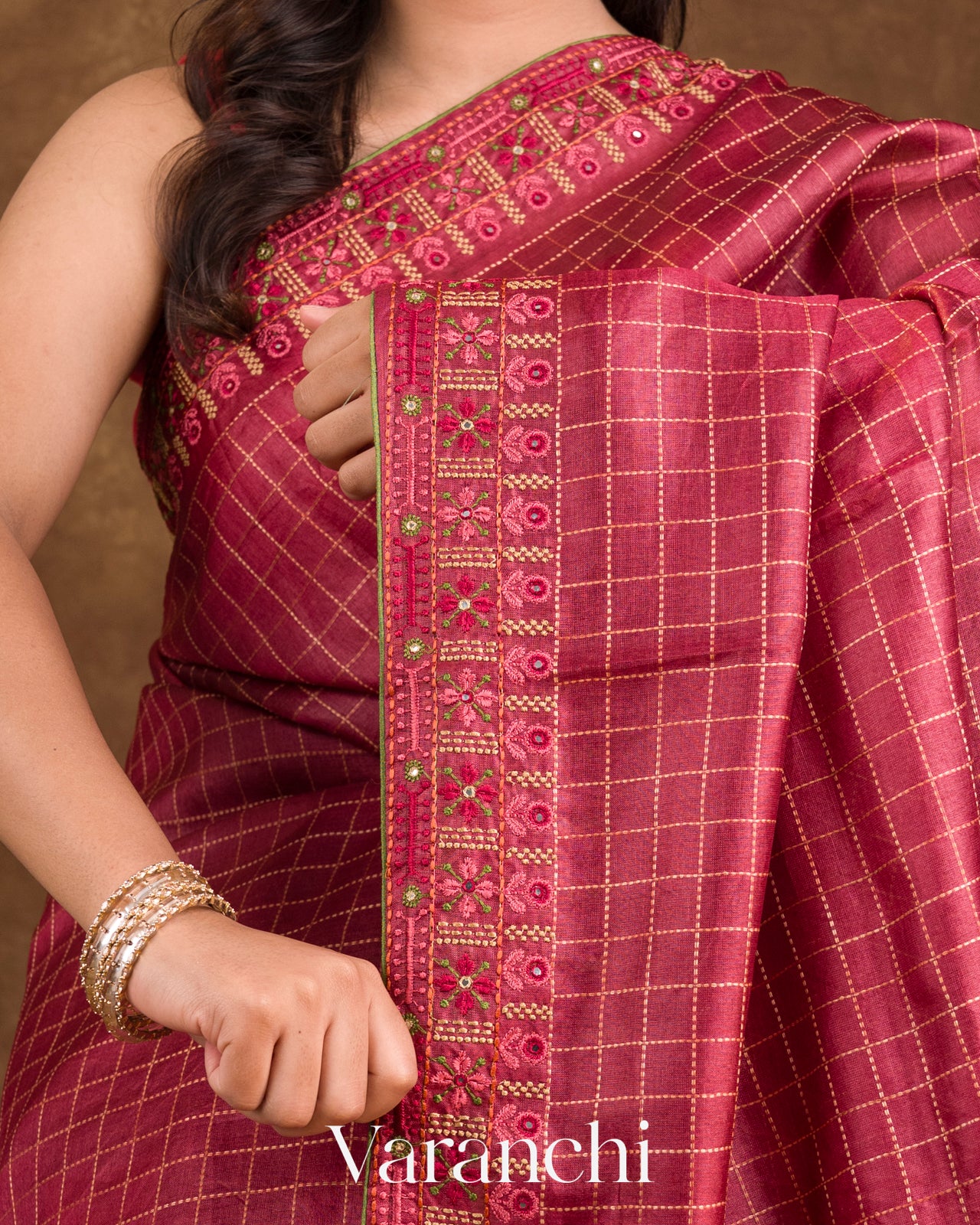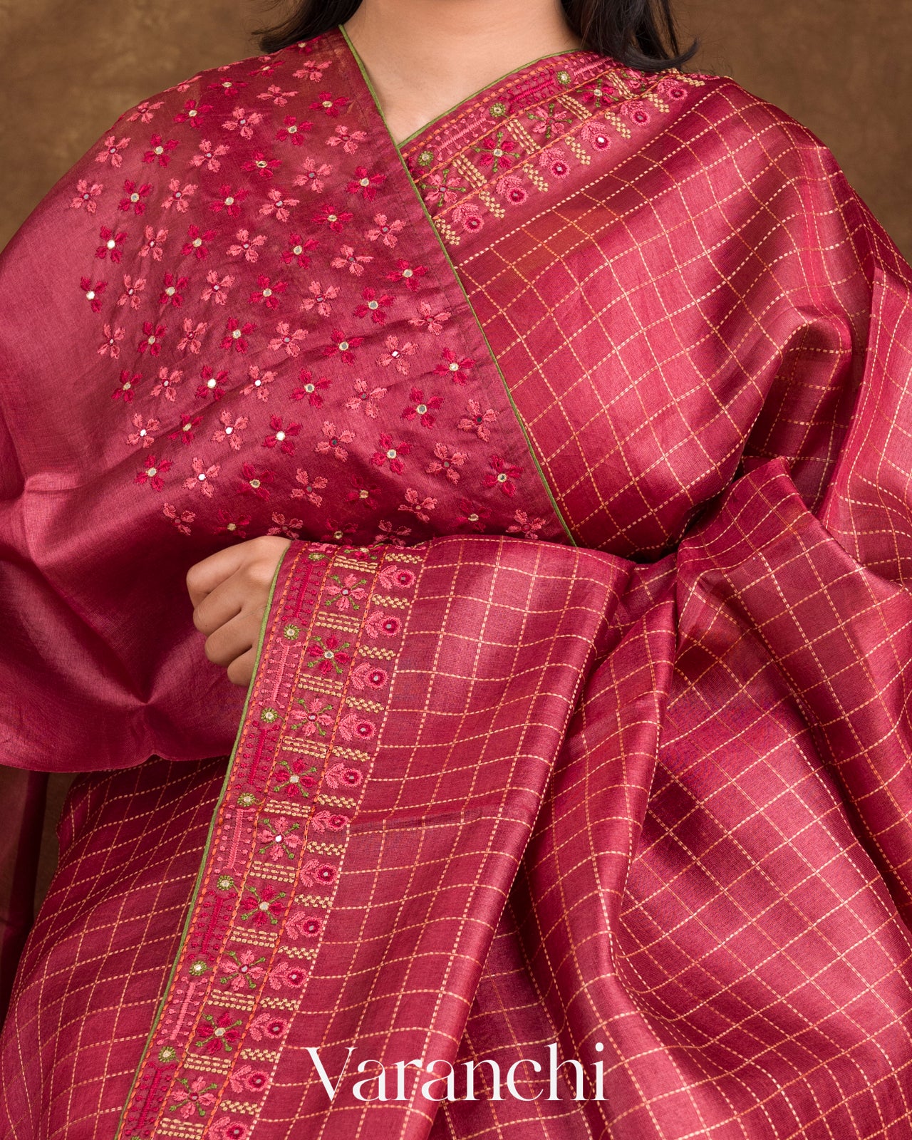 Blouse Piece Included In Self-Colour With Mirror-Work (1 mt. approx) |