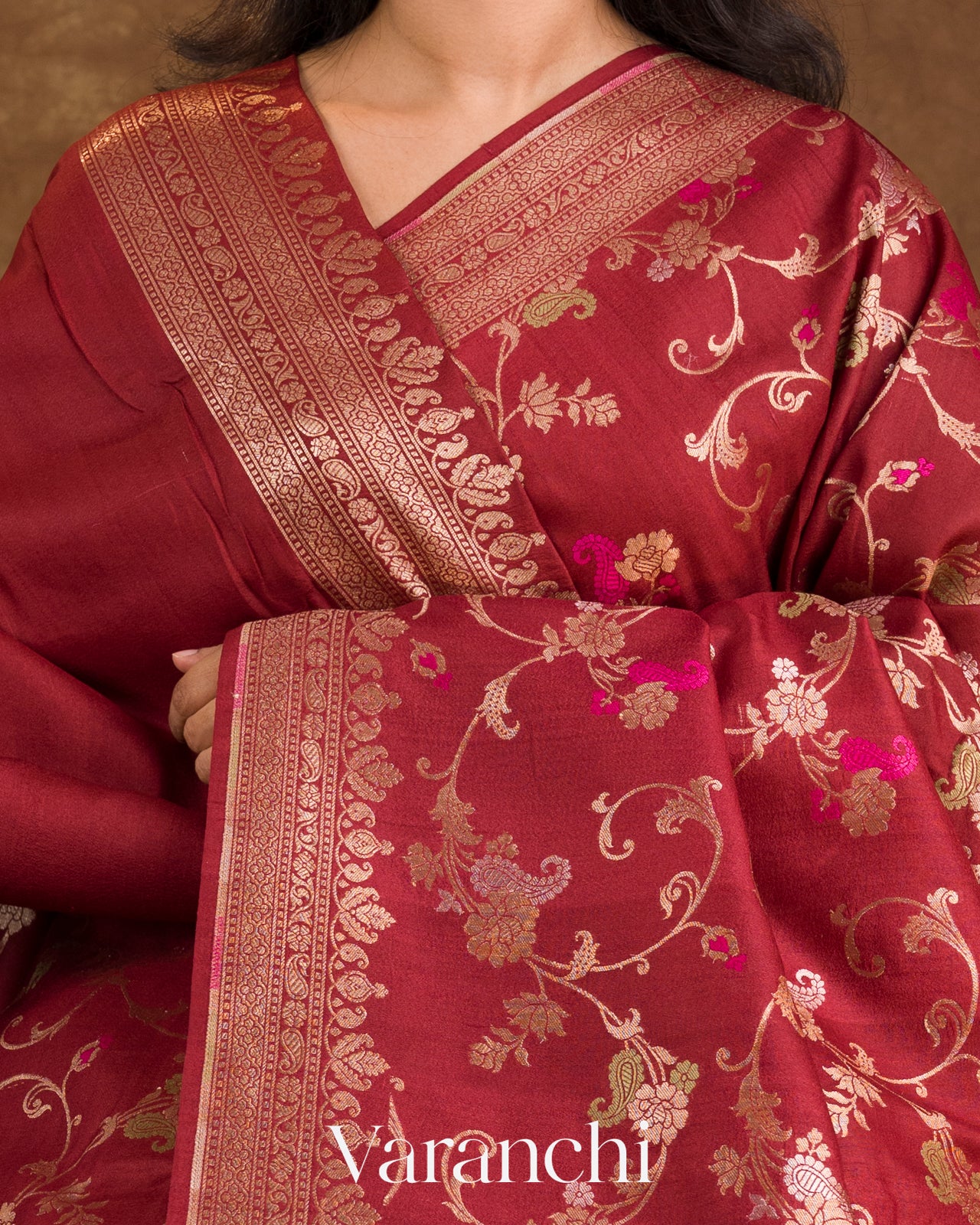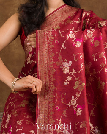 Maroon Pure Tussar Georgette Silk Handloom Saree