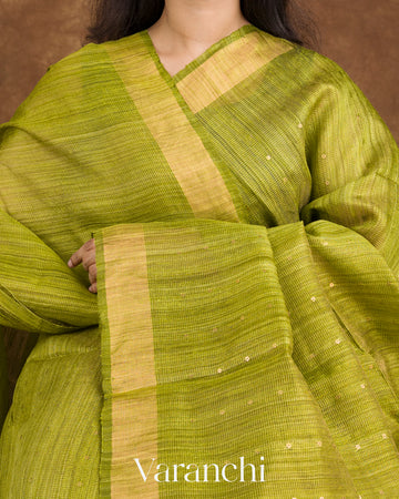 Mehendi Green Jamdani Pure Matka Silk Handloom Saree