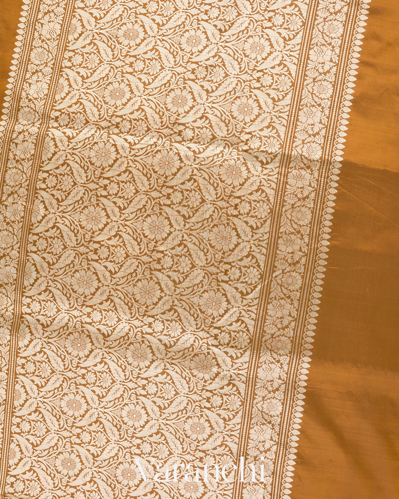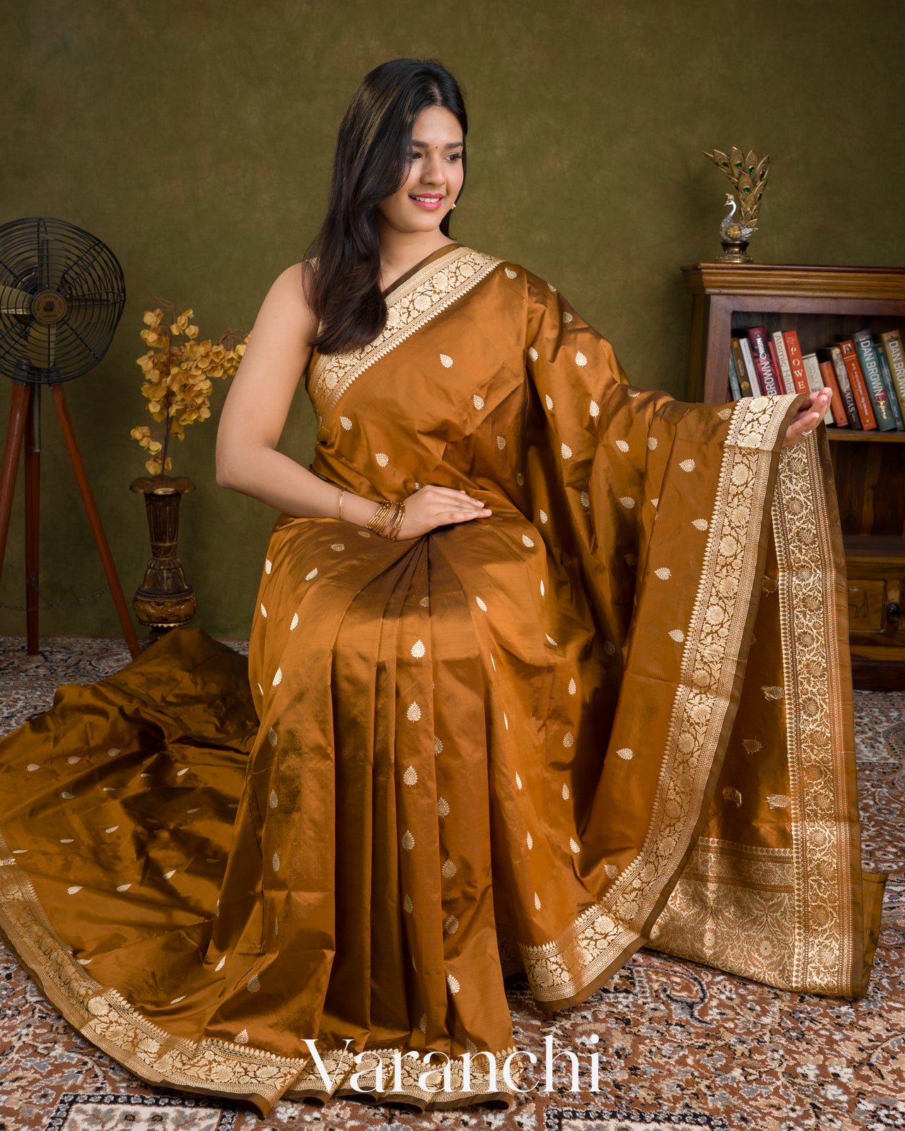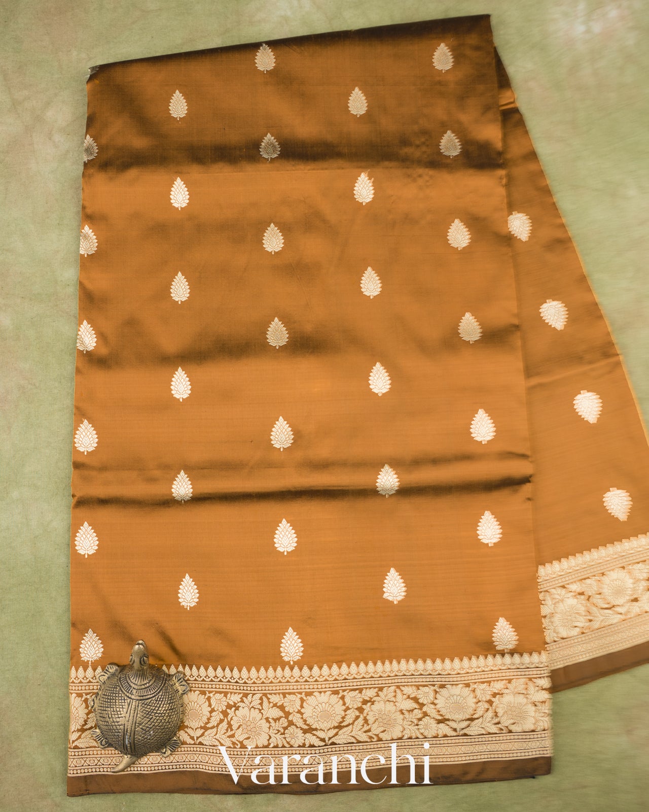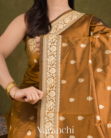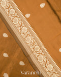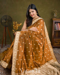 Mustard Brown Pure Katan Silk with Resham Weaving Handloom Saree