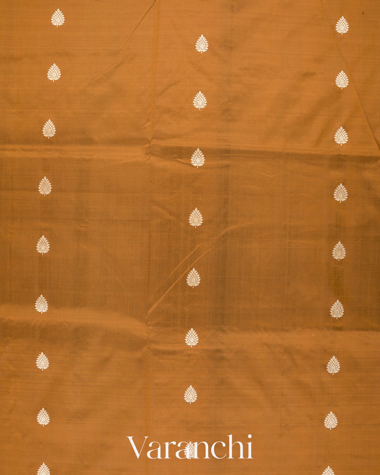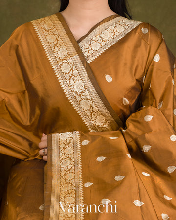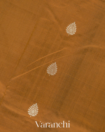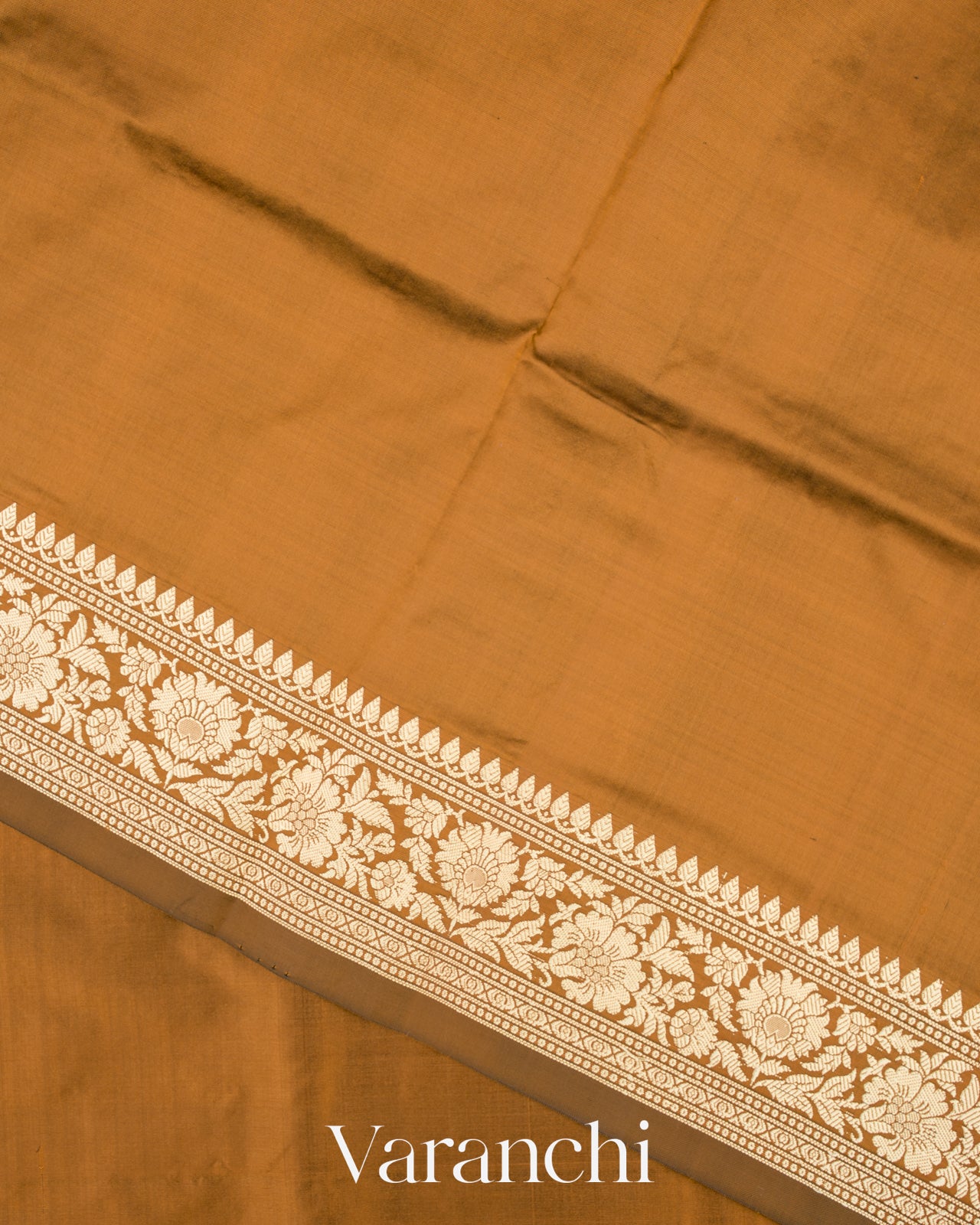 Mustard Brown Pure Katan Silk with Resham Weaving Handloom Saree