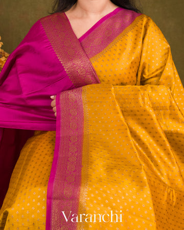 Mustard Gold Pure Chiniya Silk Handloom Saree