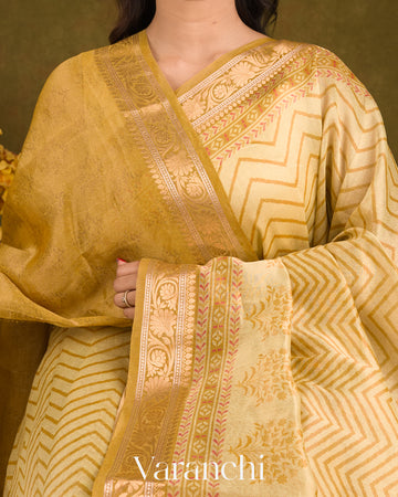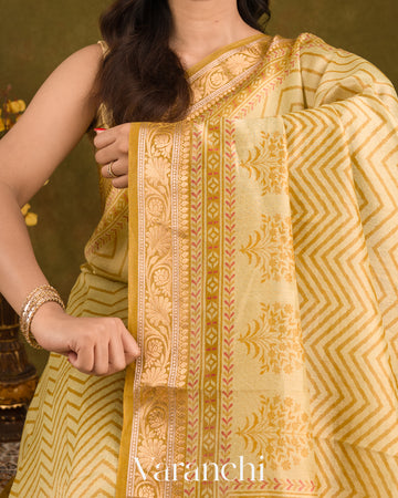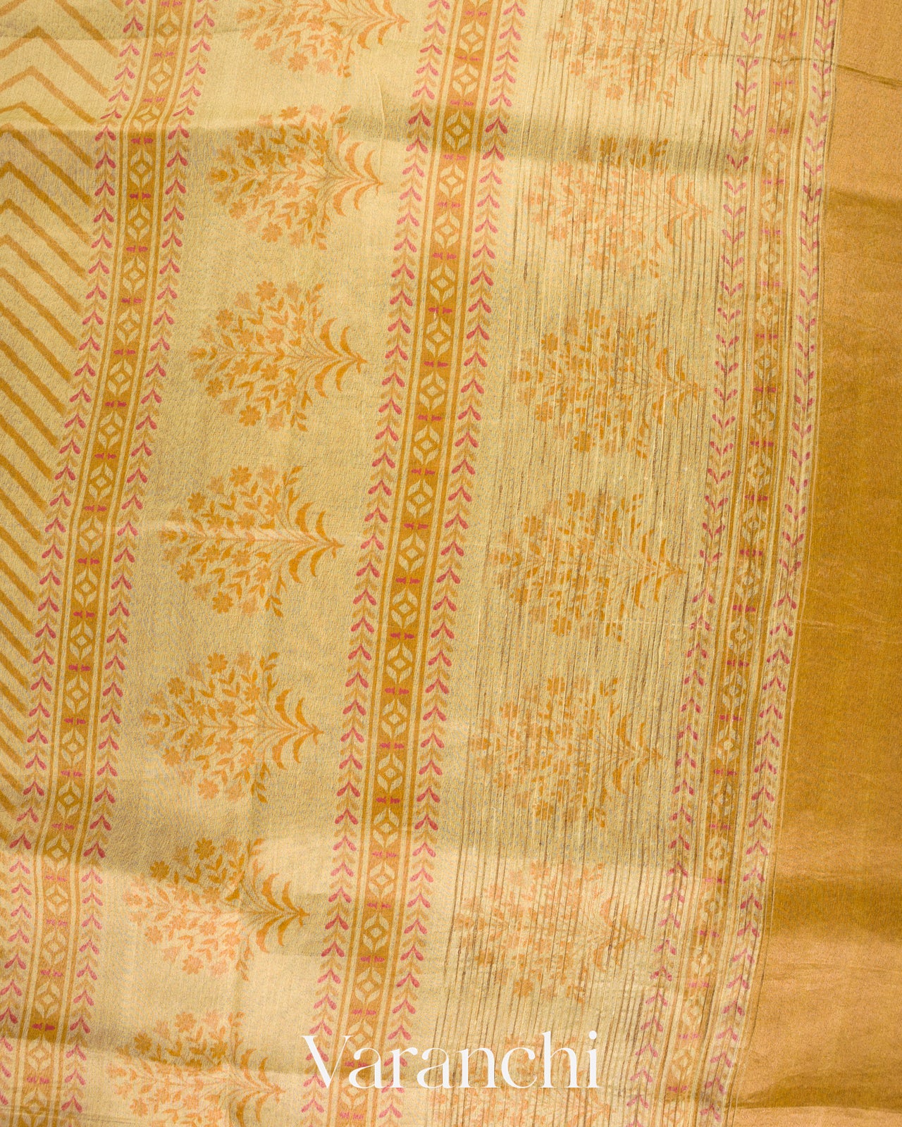 Mustard Yellow Digital Printed Pure Silk Cotton Tissue Saree
