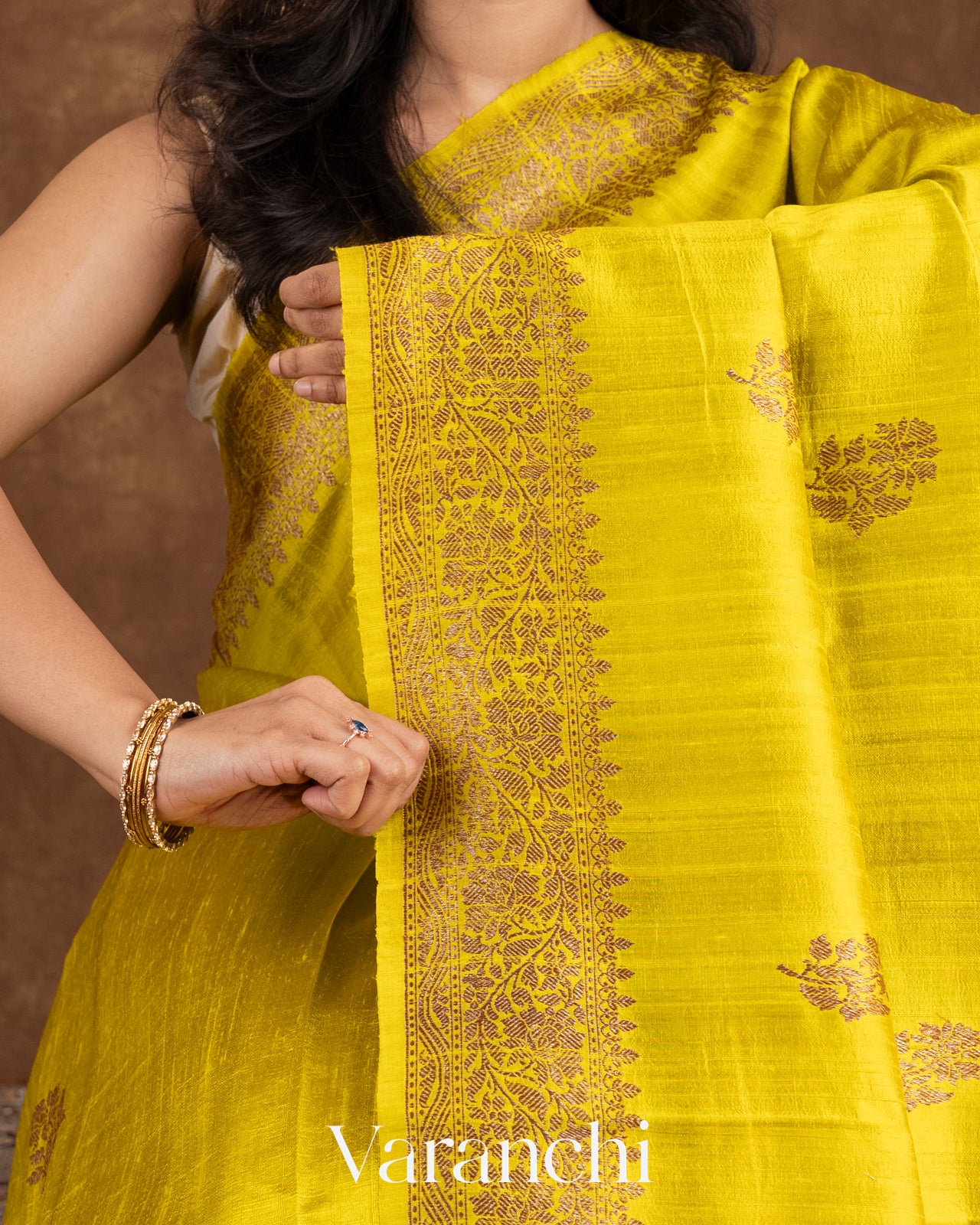 Mustard Yellow Pure Raw Silk Handloom Saree