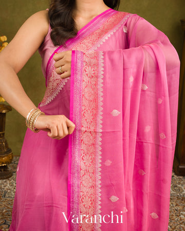 Muted Magenta Pink Pure Chiffon Silk Handloom Saree