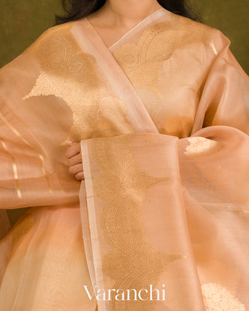 Muted Peach-Apricot Beige Pure Kora Silk Ombre-Dyed Handloom Saree