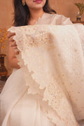 Off White Tissue Applique and Embroidered Pure Kora Silk Saree