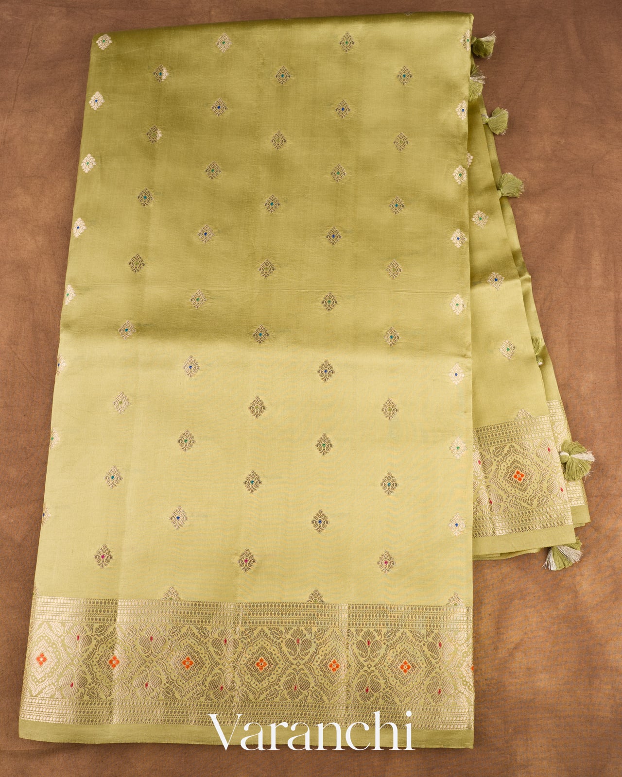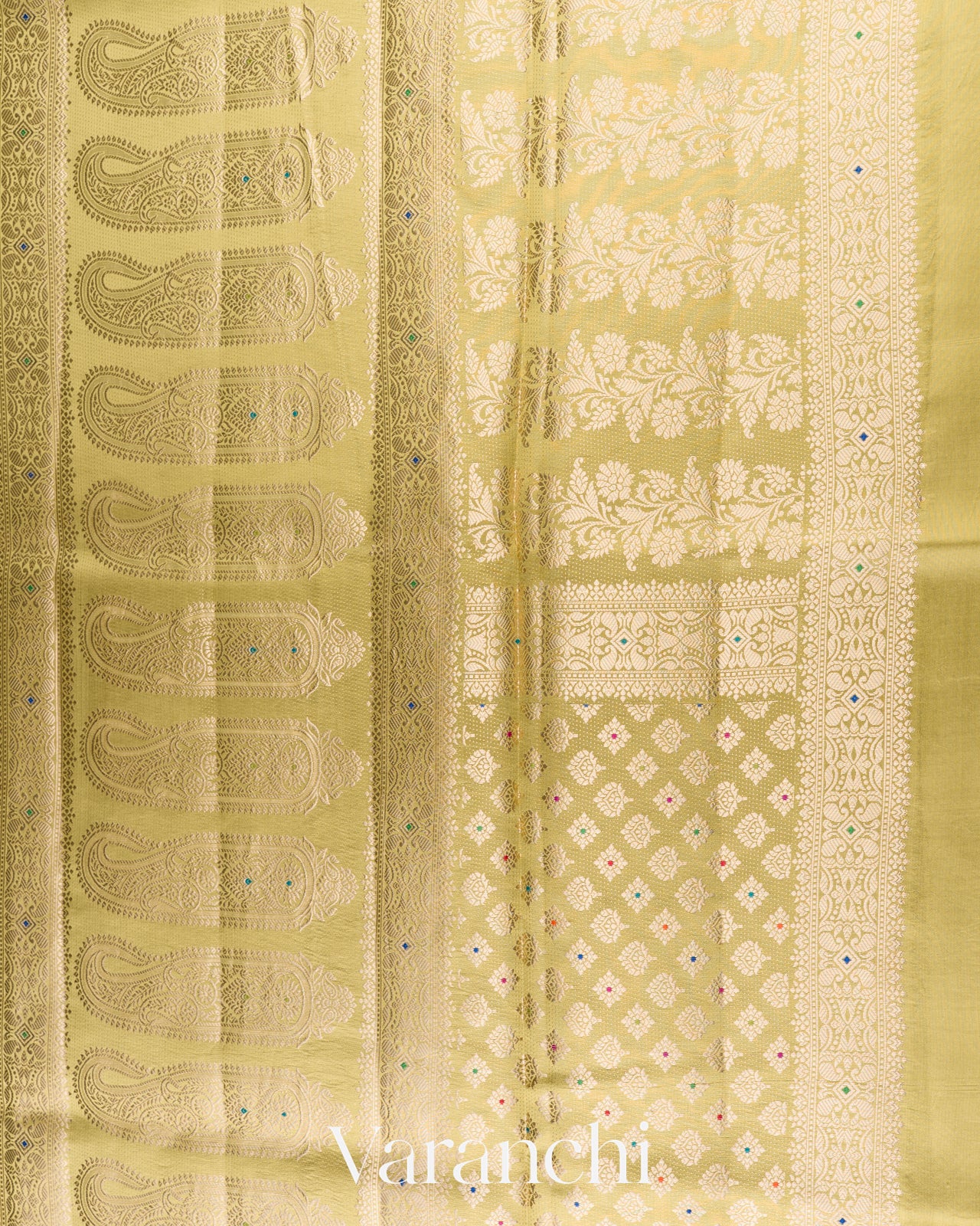 Light Olive Yellow Pure Dupion Silk Saree