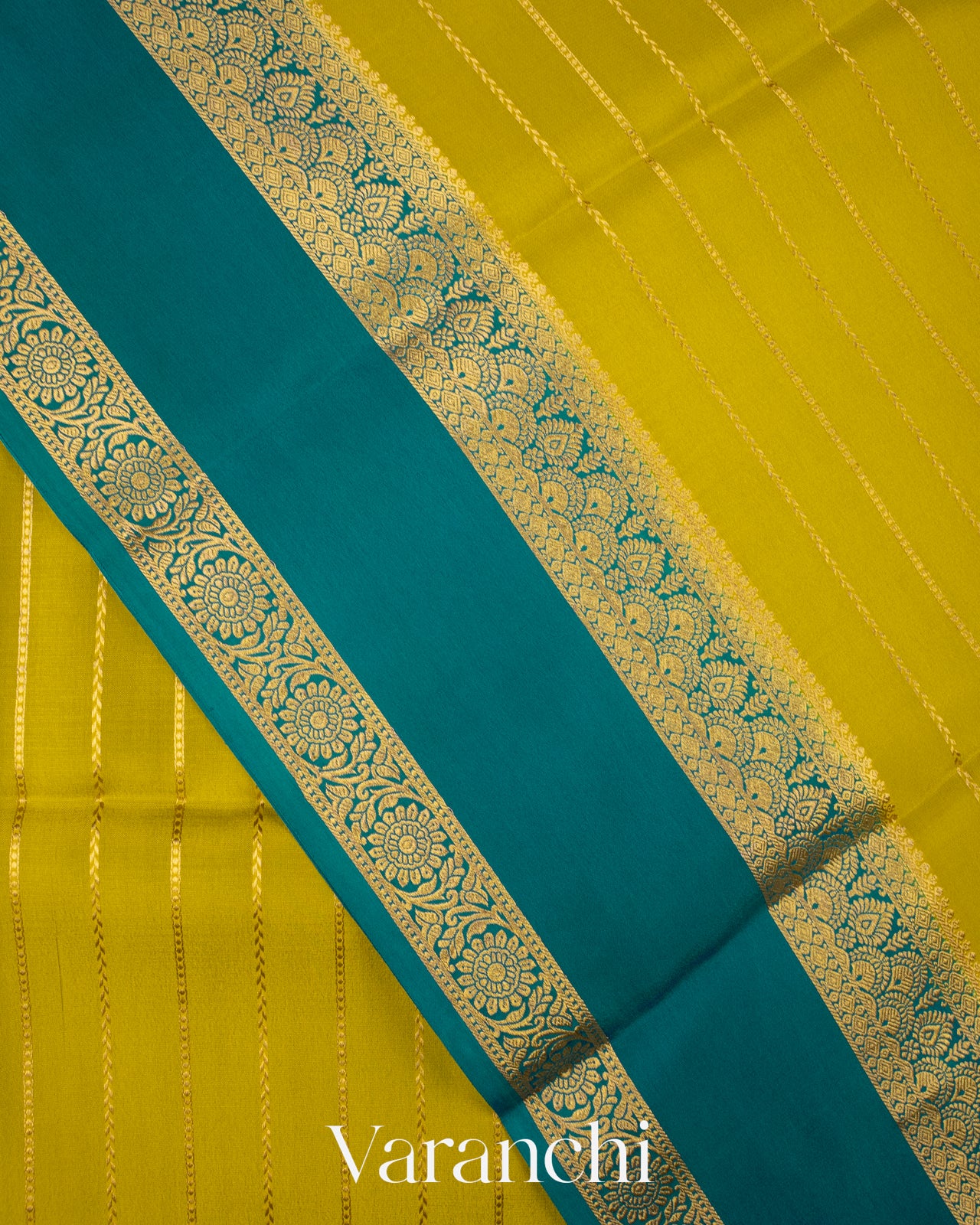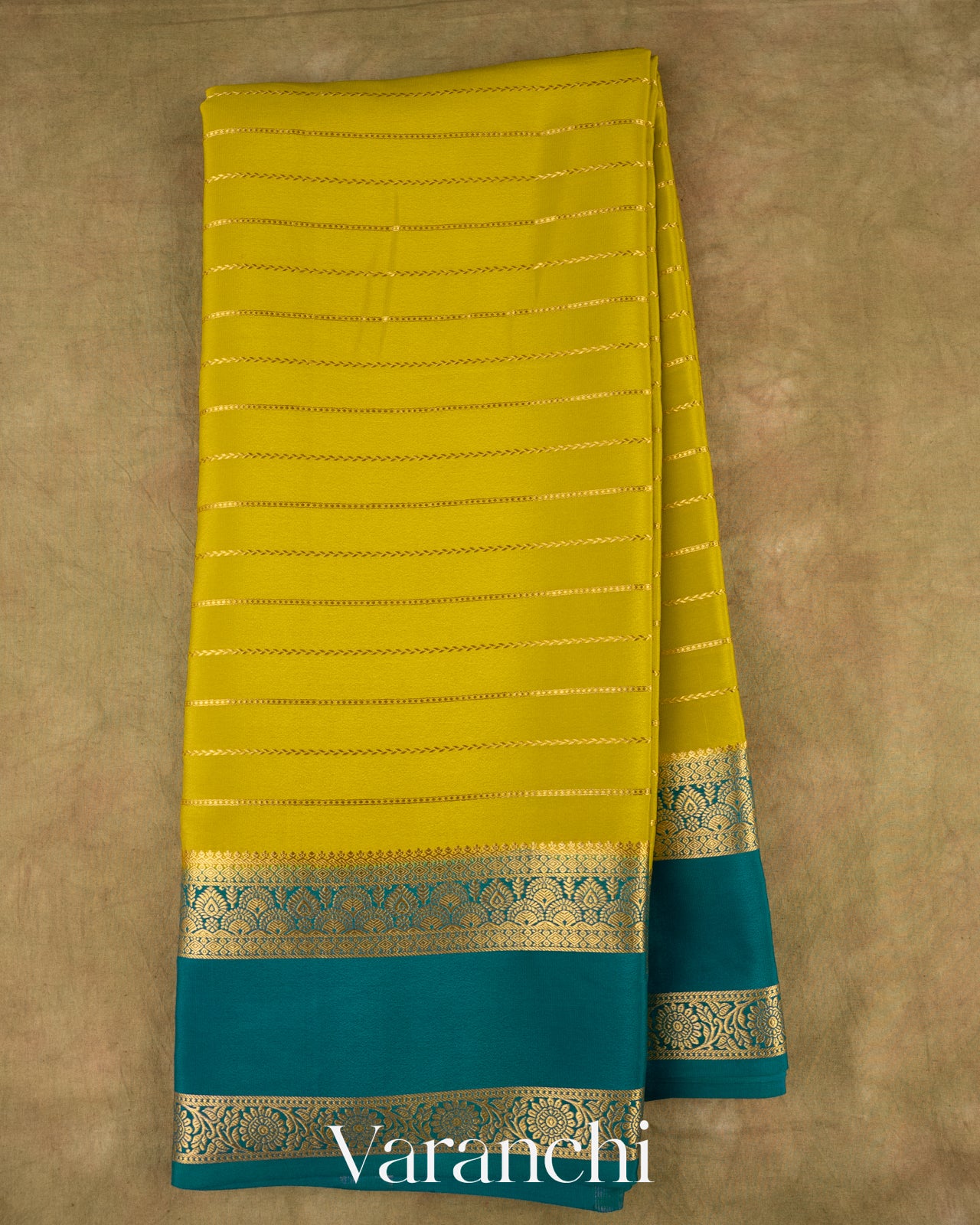 Olive Yellow Pure Mysore Crepe Silk Saree