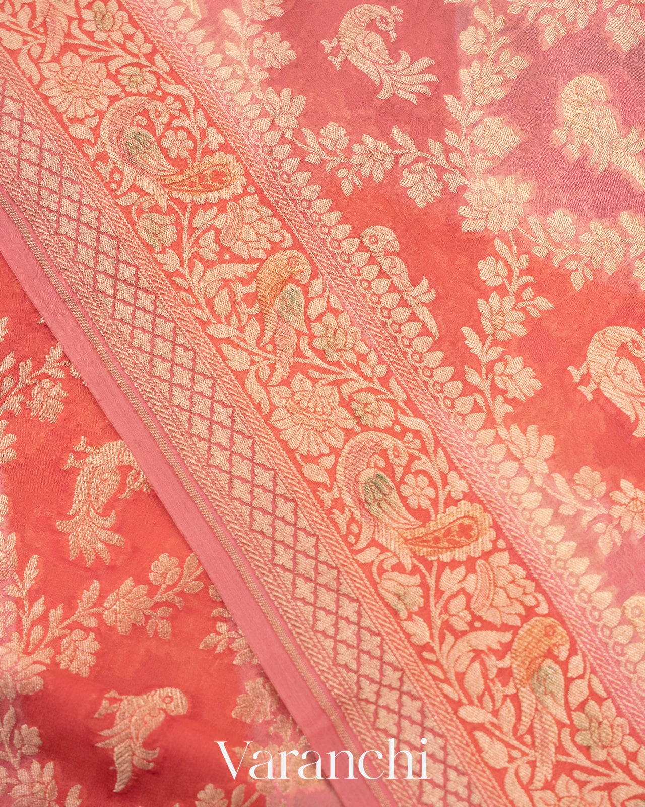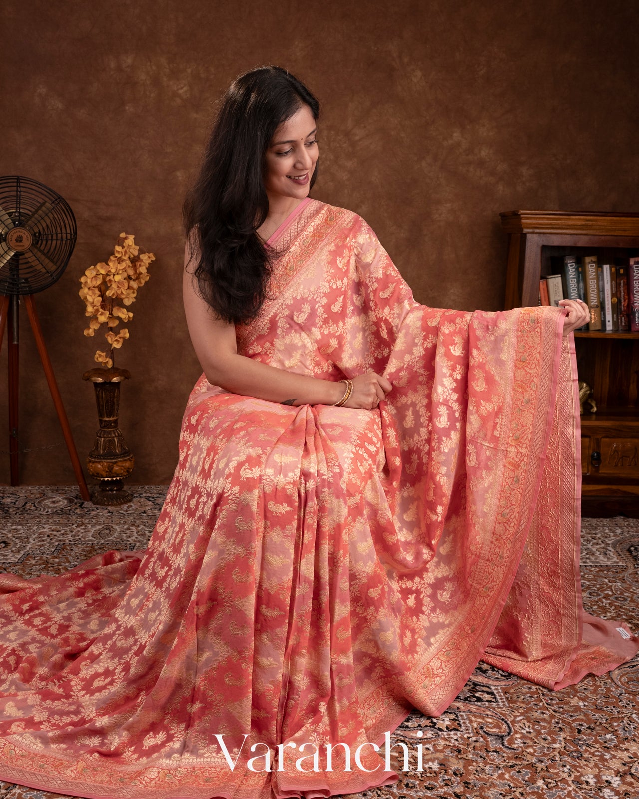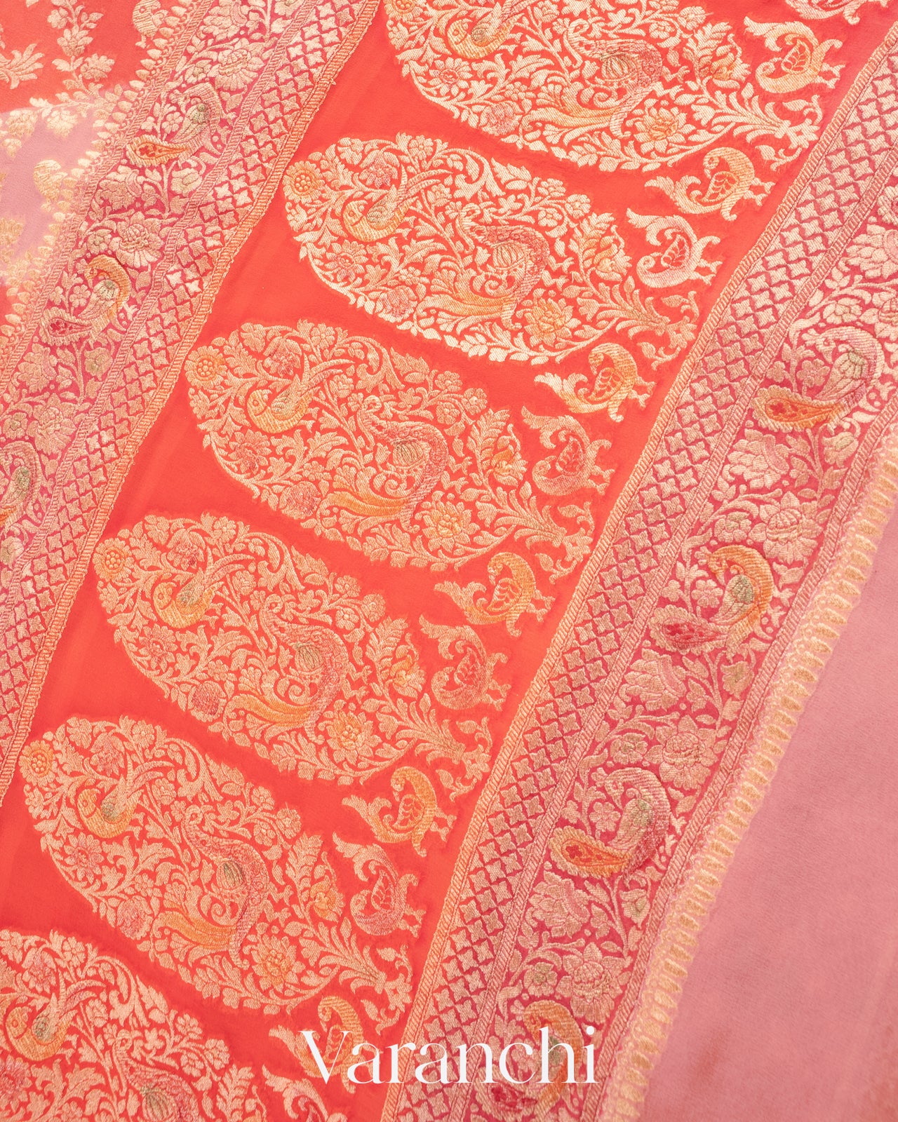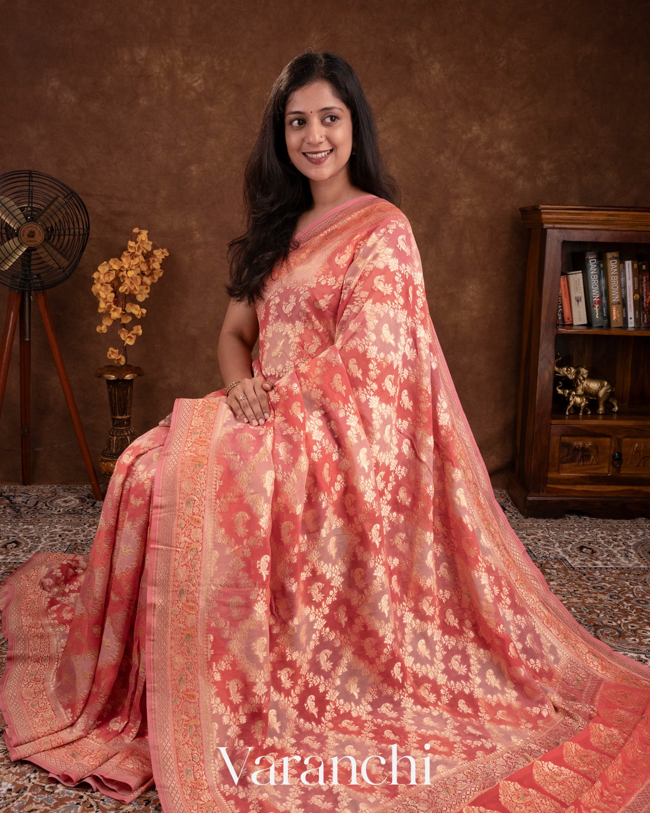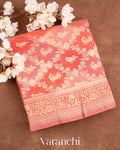 Peach Rangkaat Pure Khaddi Georgette Silk Handloom Saree