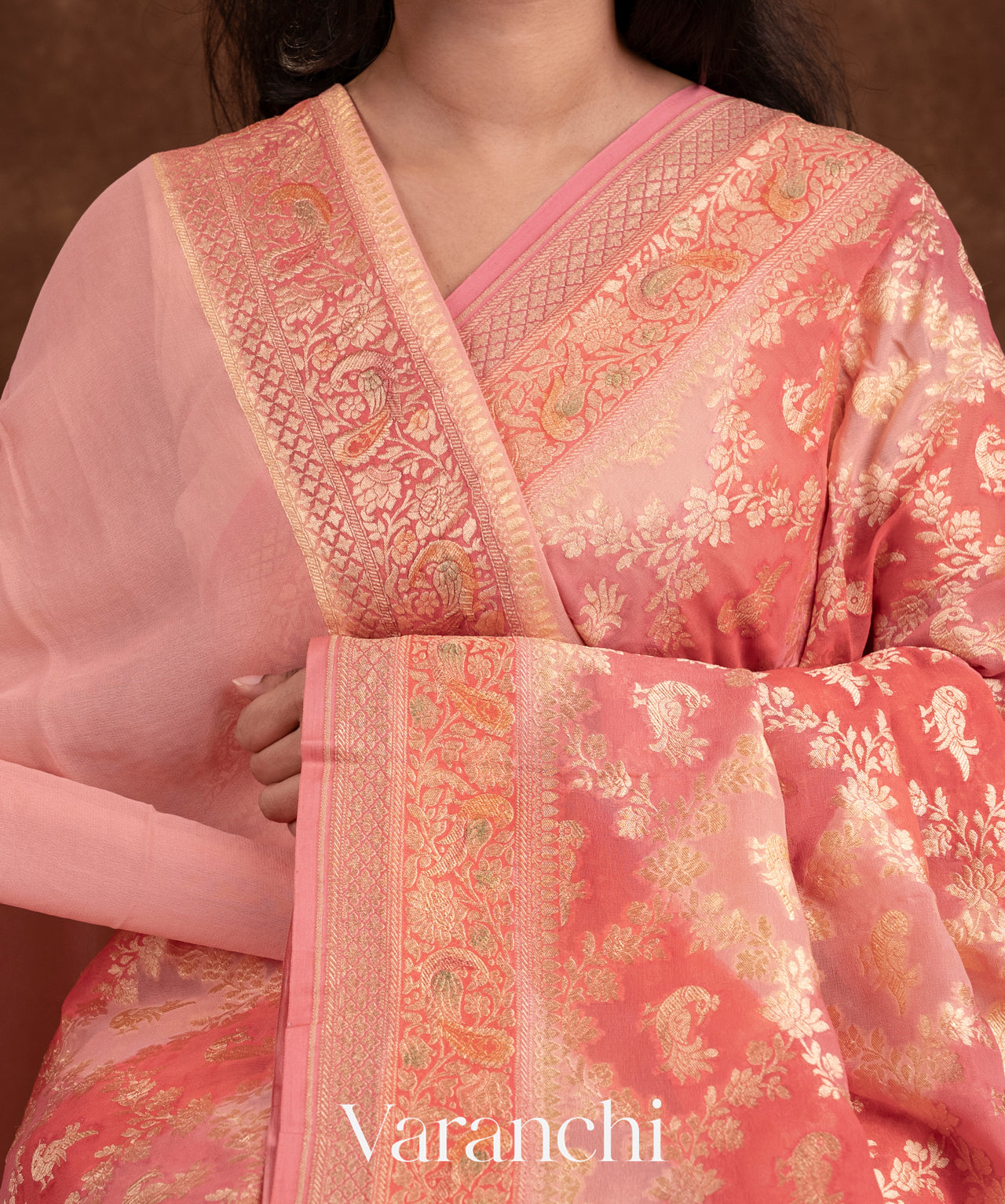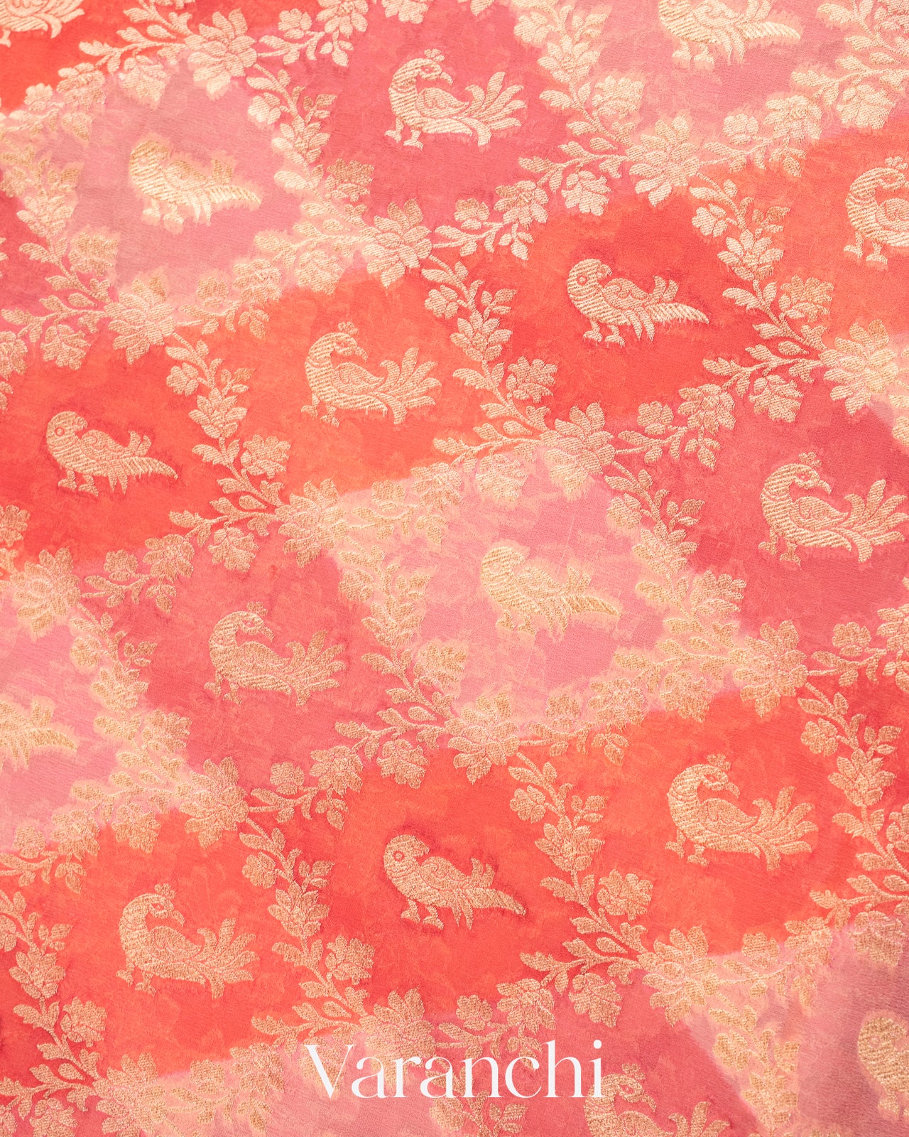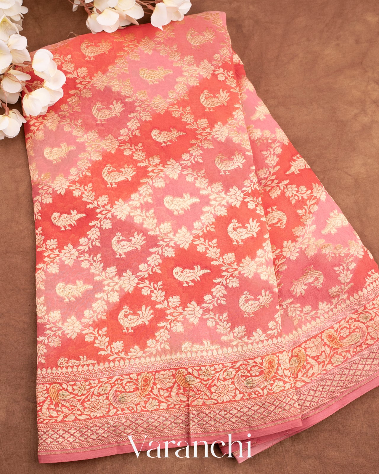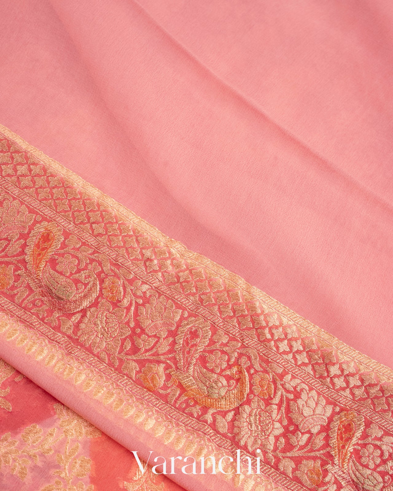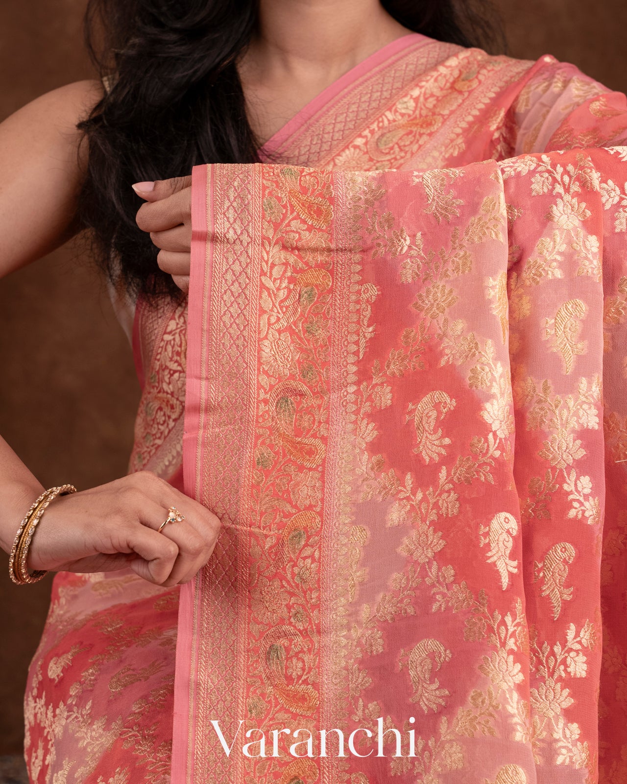 Peach Rangkaat Pure Khaddi Georgette Silk Handloom Saree