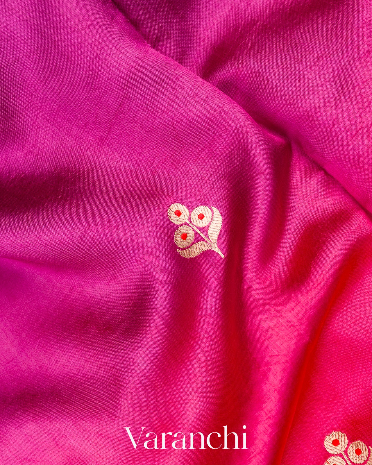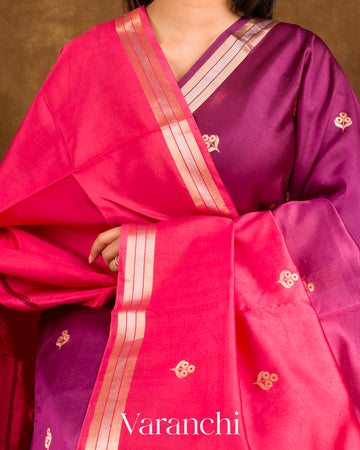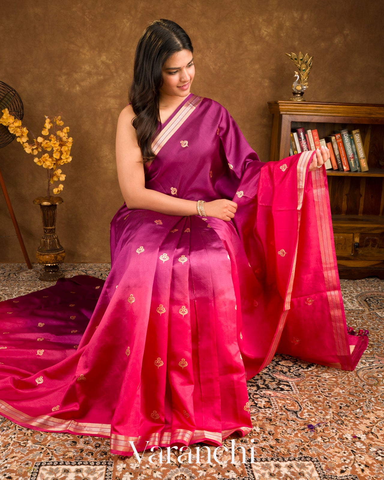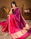 Purple And Rani Pink Ombre-Dyed Pure Katan Silk Handloom Saree
