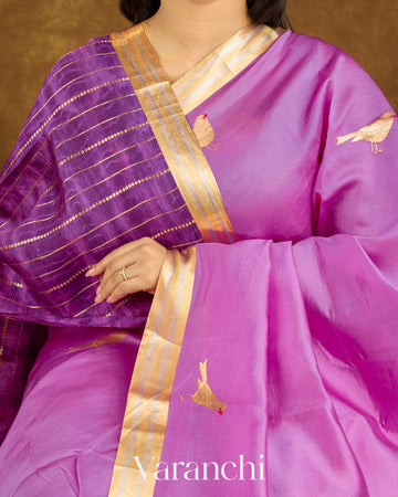 Blouse Piece Included in Purple Colour with Shibori Dye and Golden Zari Striped Zari (1 mt. approx) |