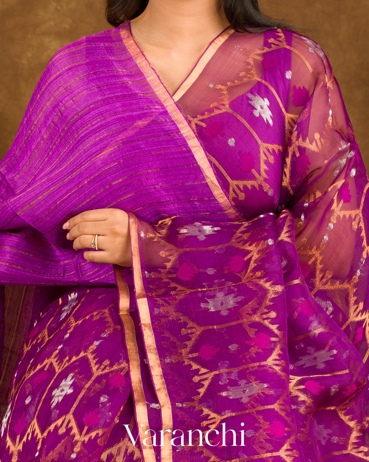 Orchid Purple Dhakai Jamdani Pure Muslin Silk Handloom Saree