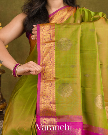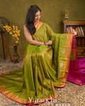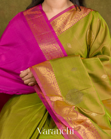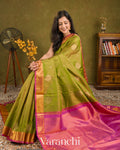 Parrot Green Pure Kanchipuram Silk Handloom Saree