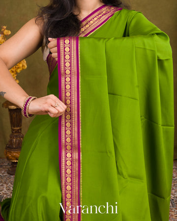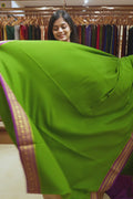 Parrot Green Pure Mysore Crepe Silk Saree