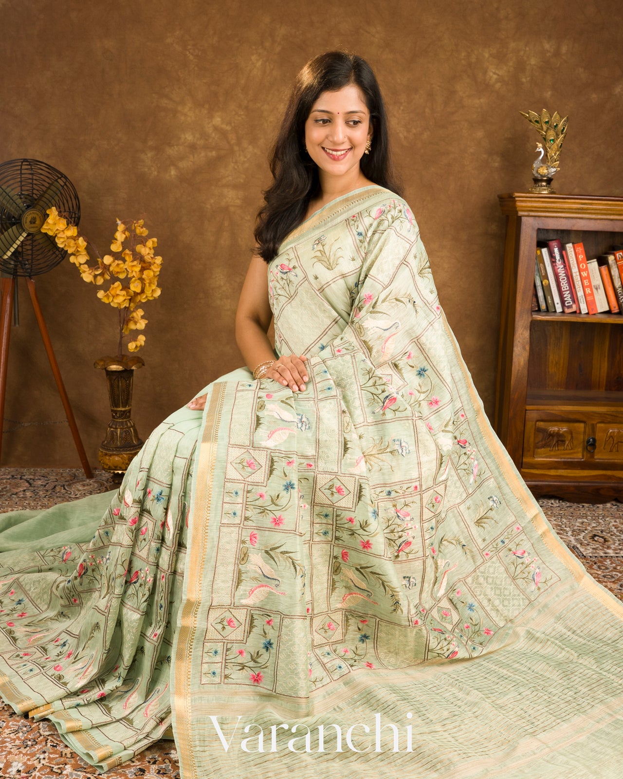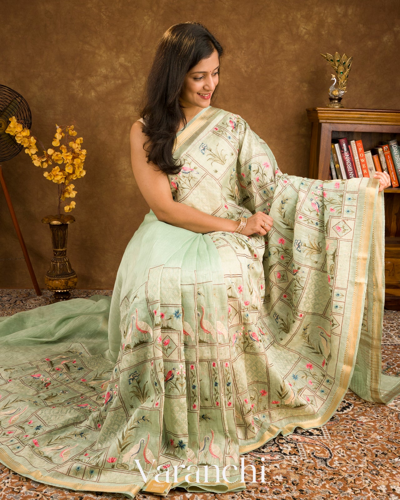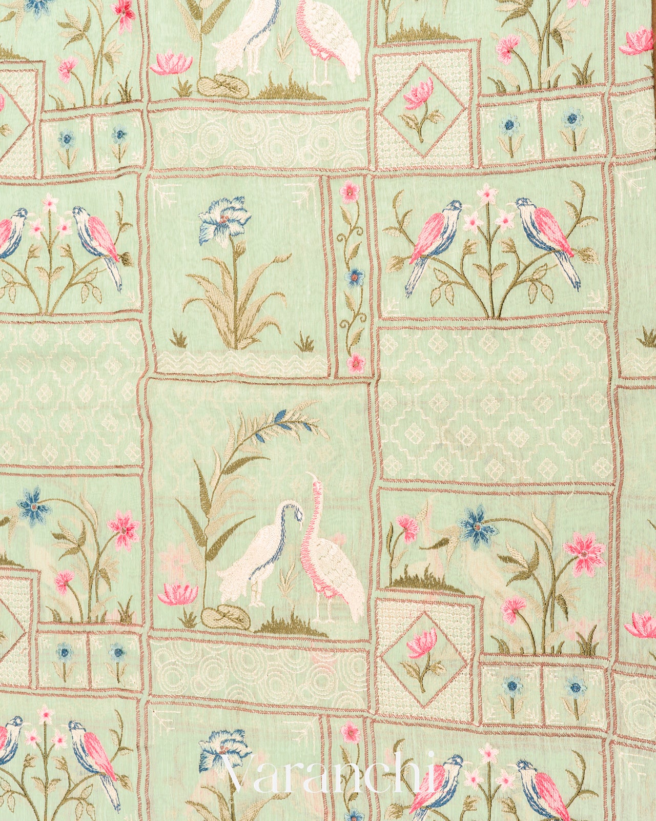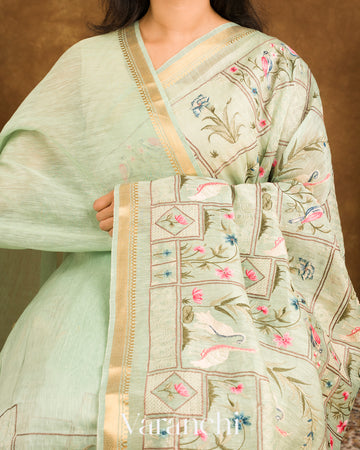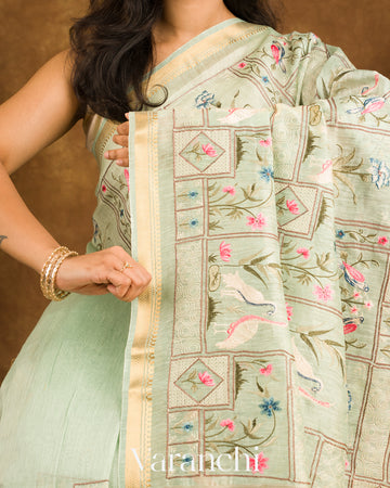 Pastel Mint All-Over Embroidered Pure Silk Linen Saree