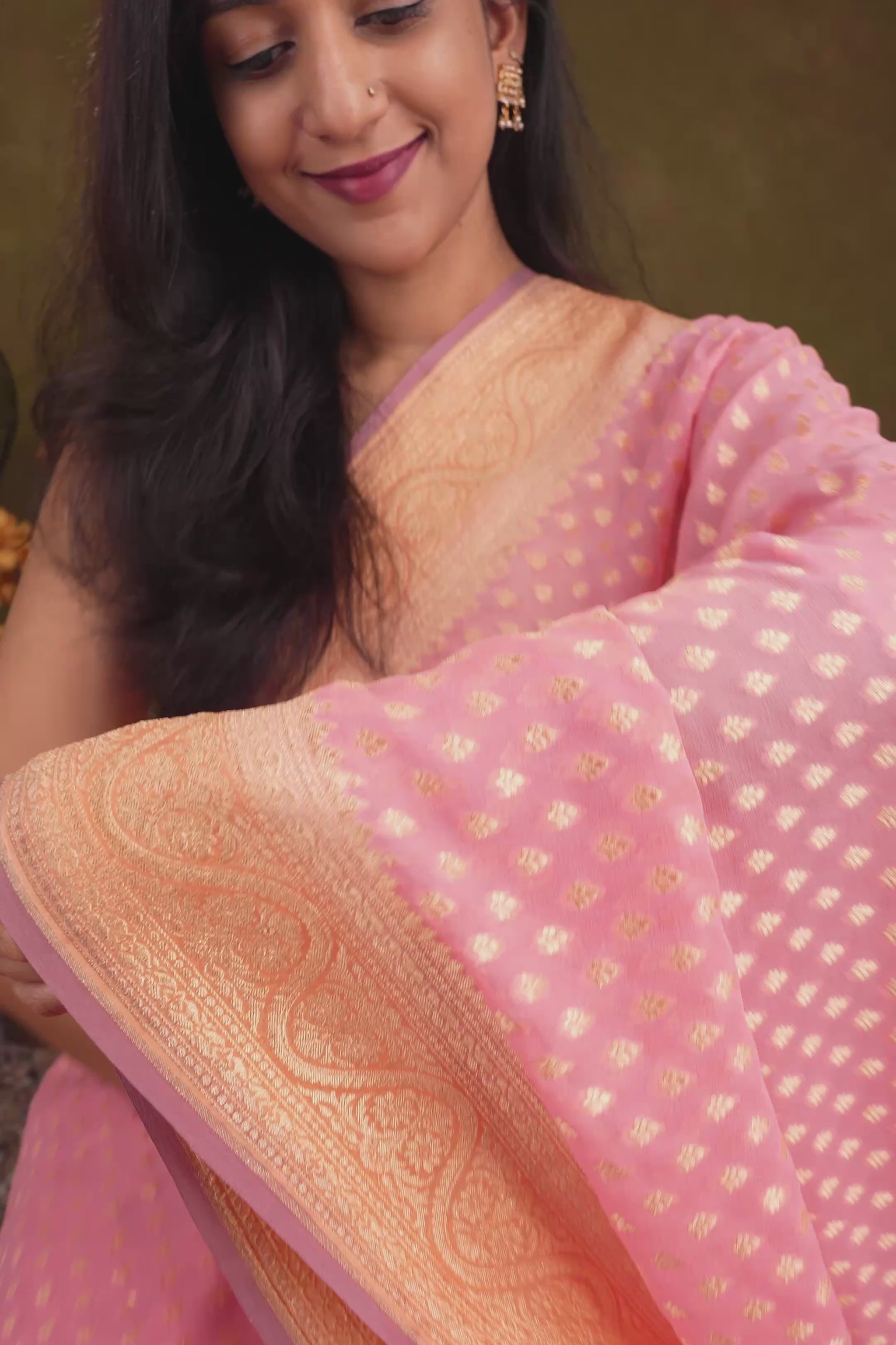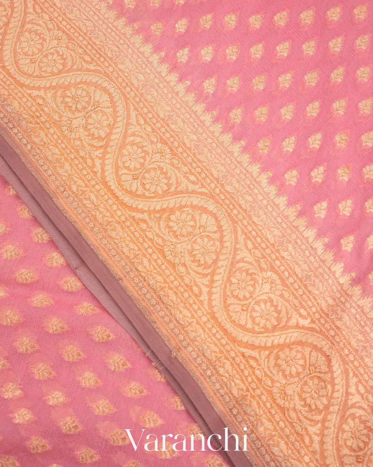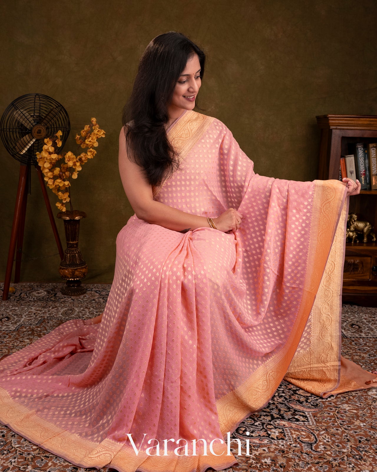 Pastel Pink Pure Georgette Silk Handloom Saree