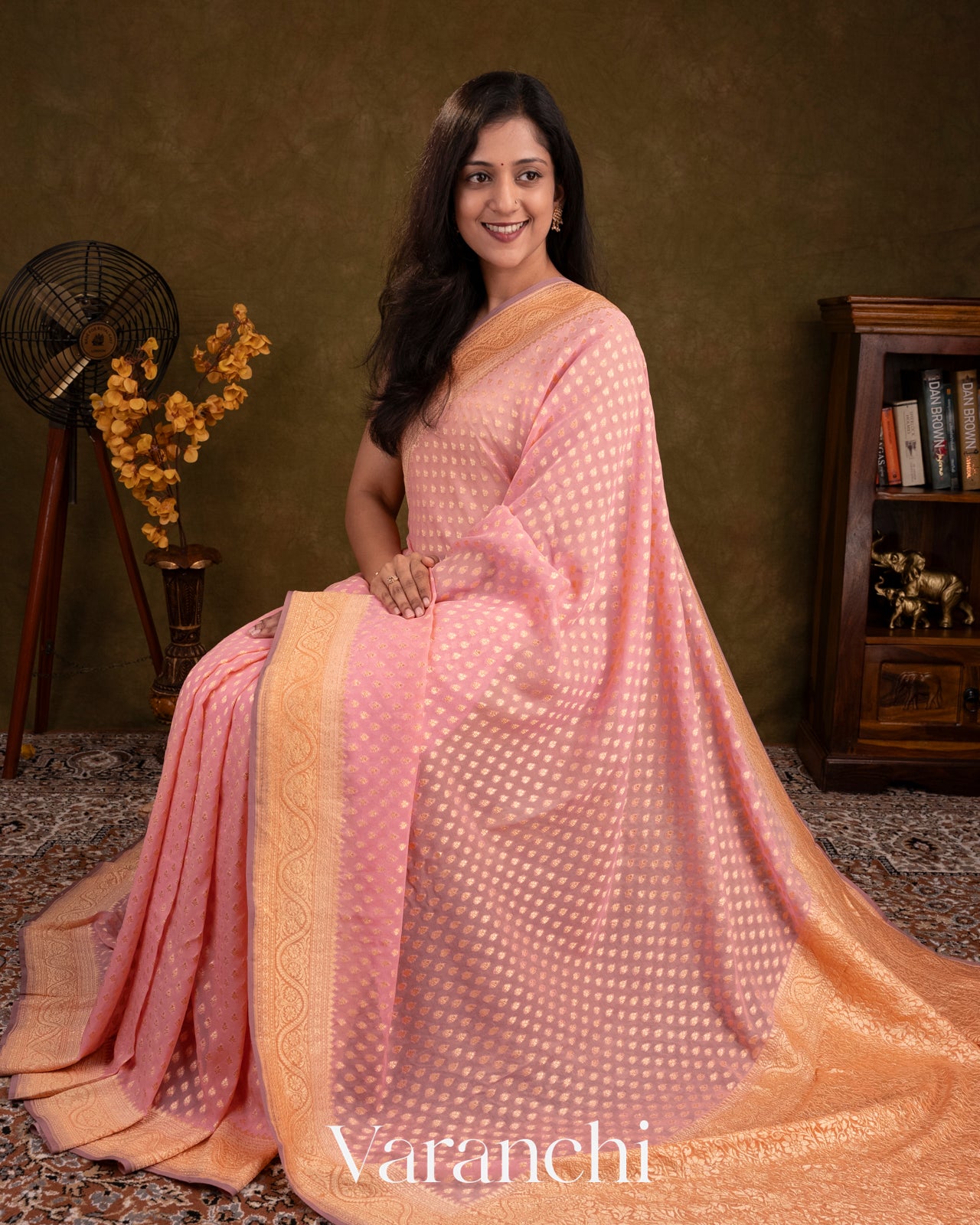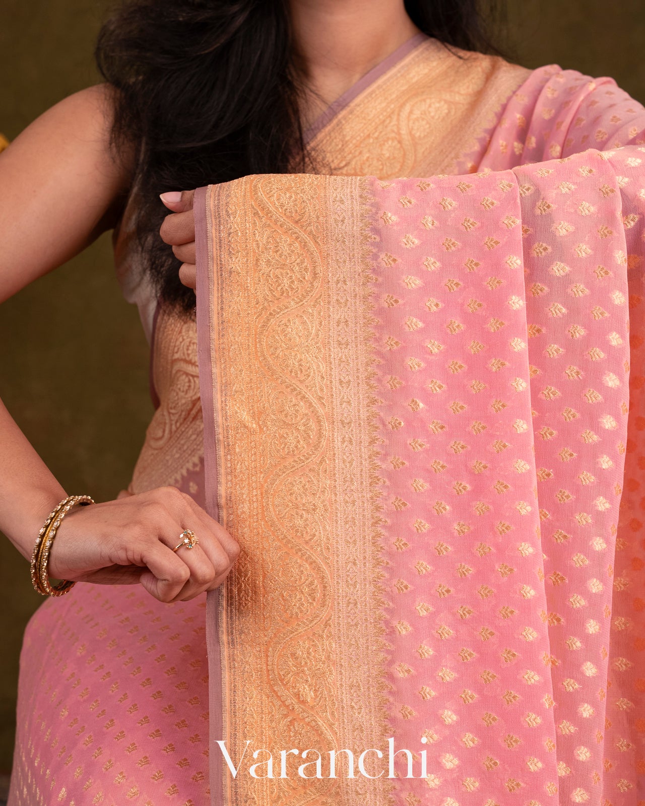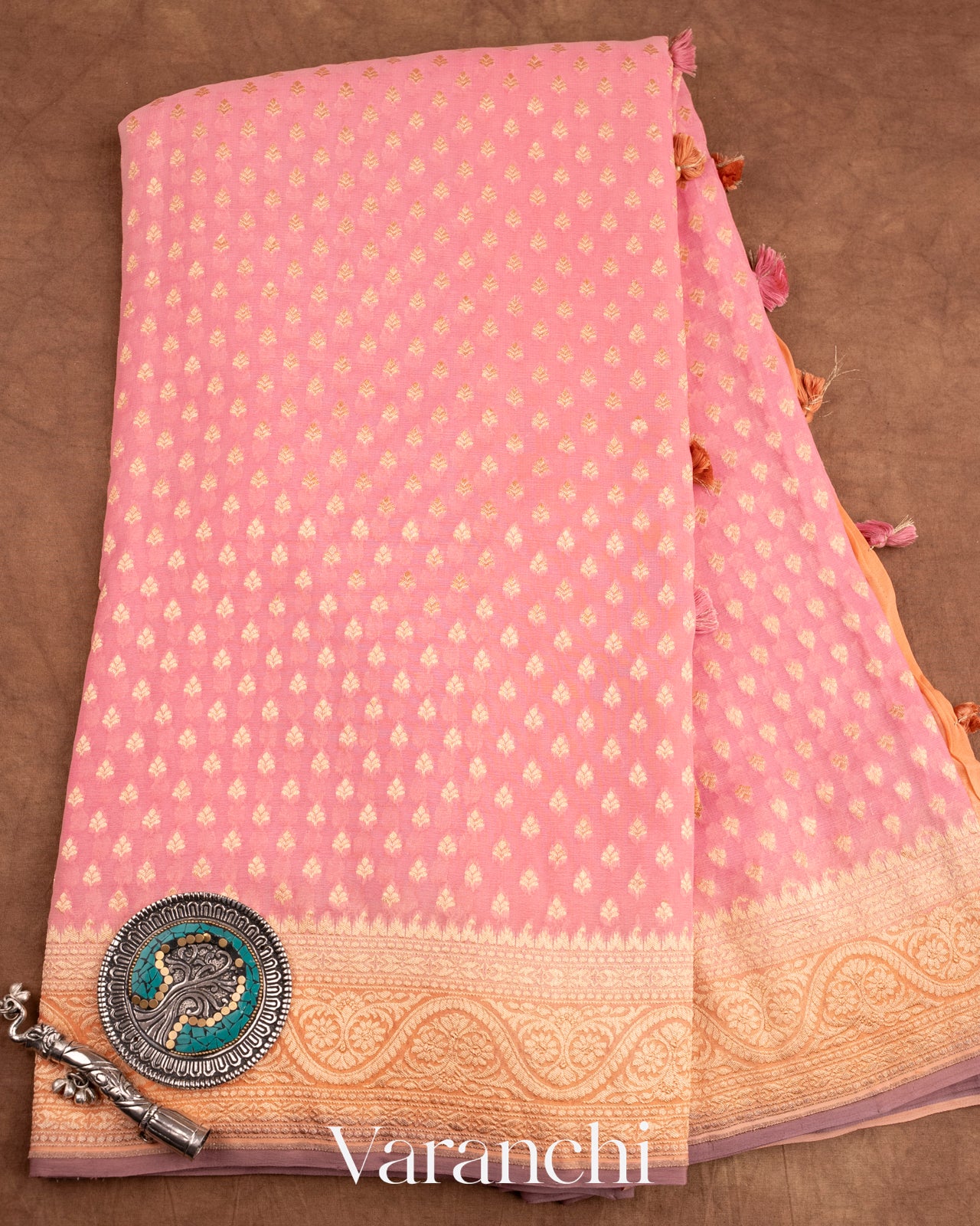 Pastel Pink Pure Georgette Silk Handloom Saree