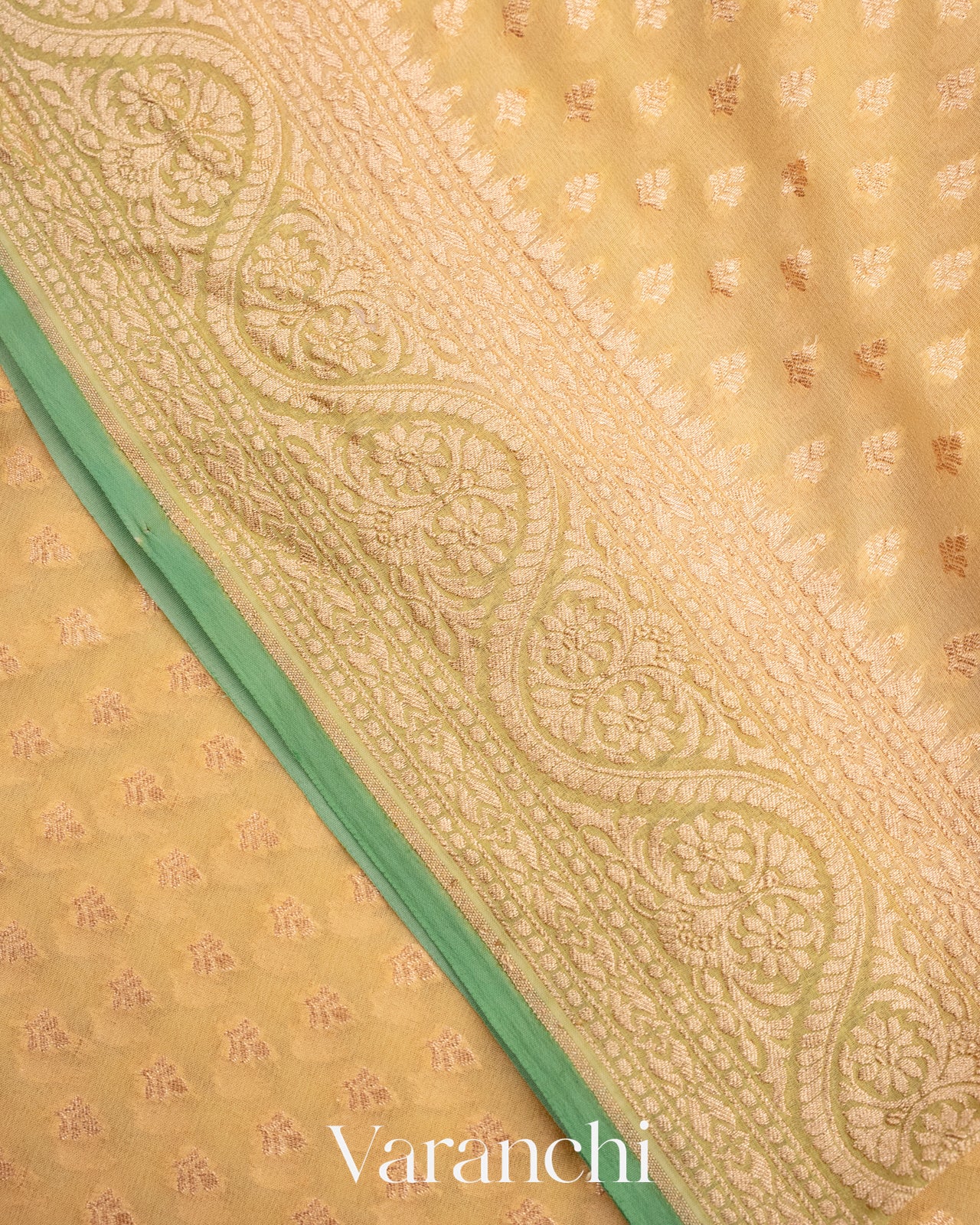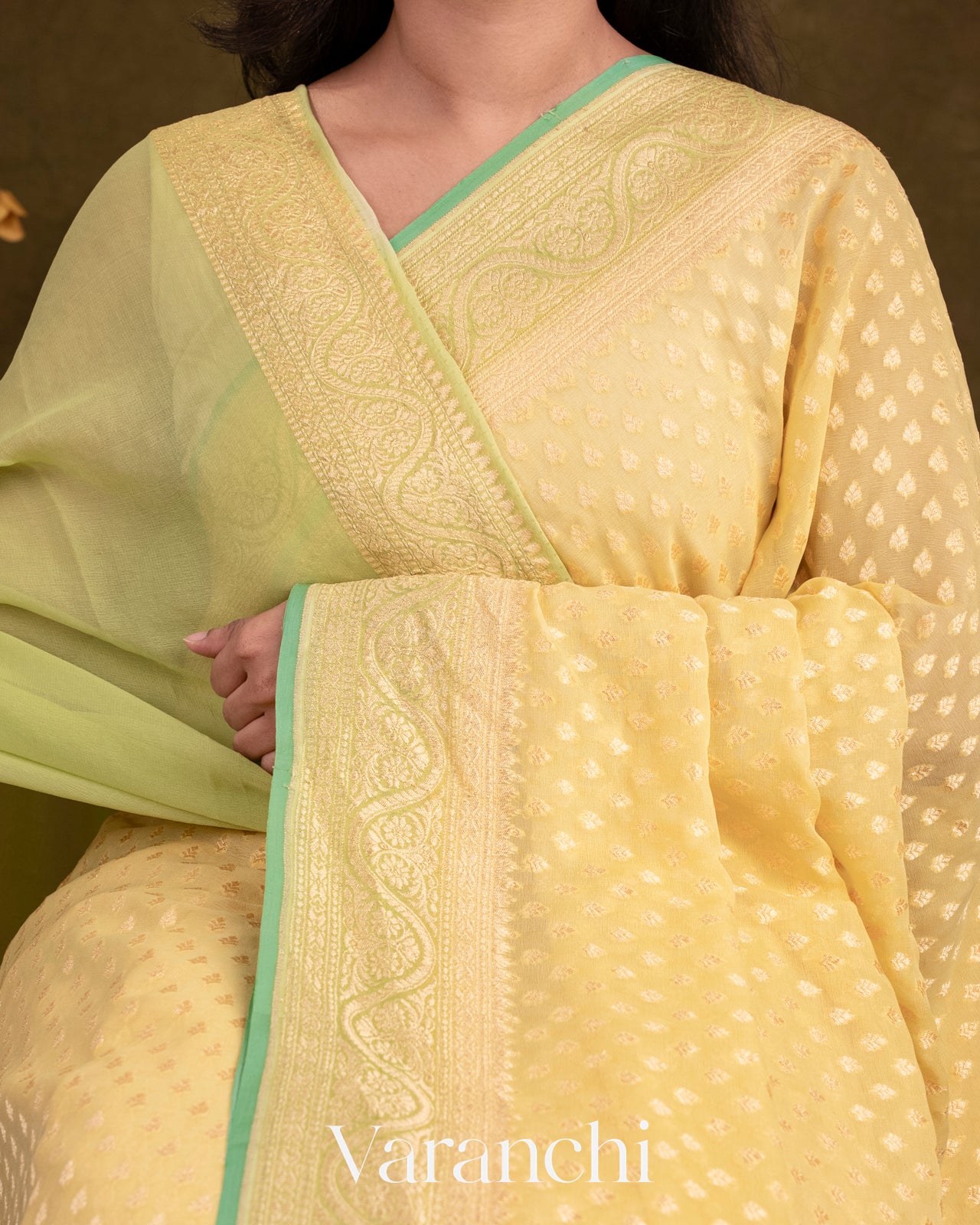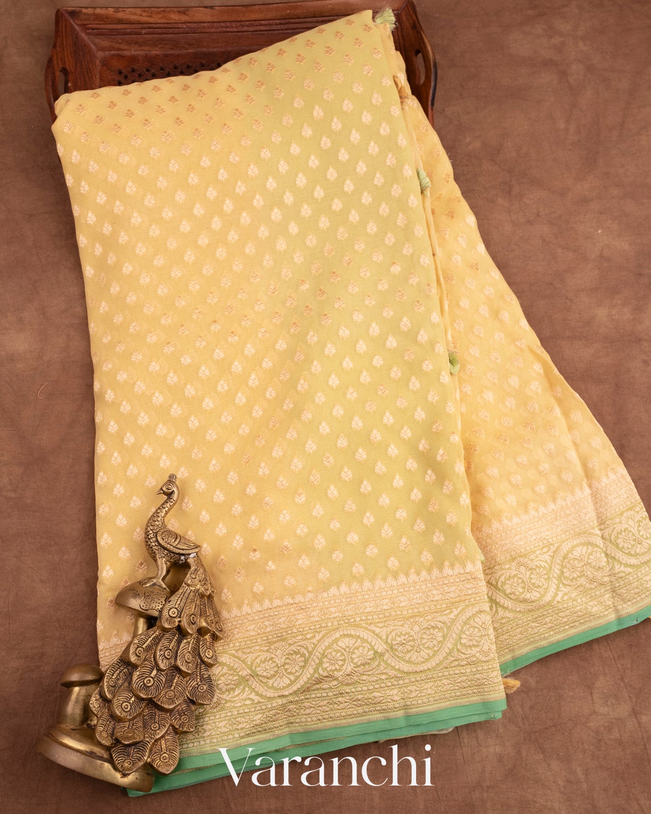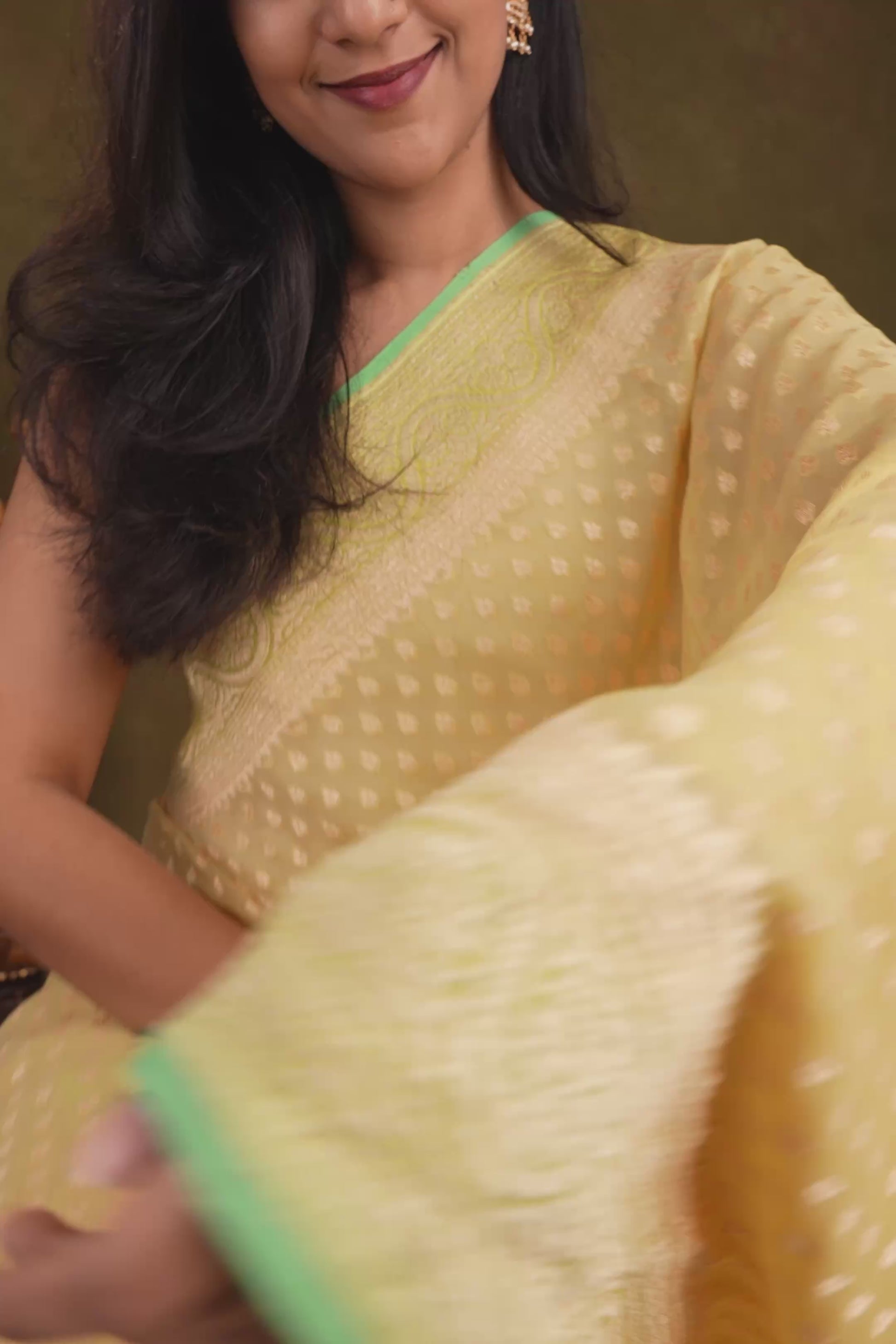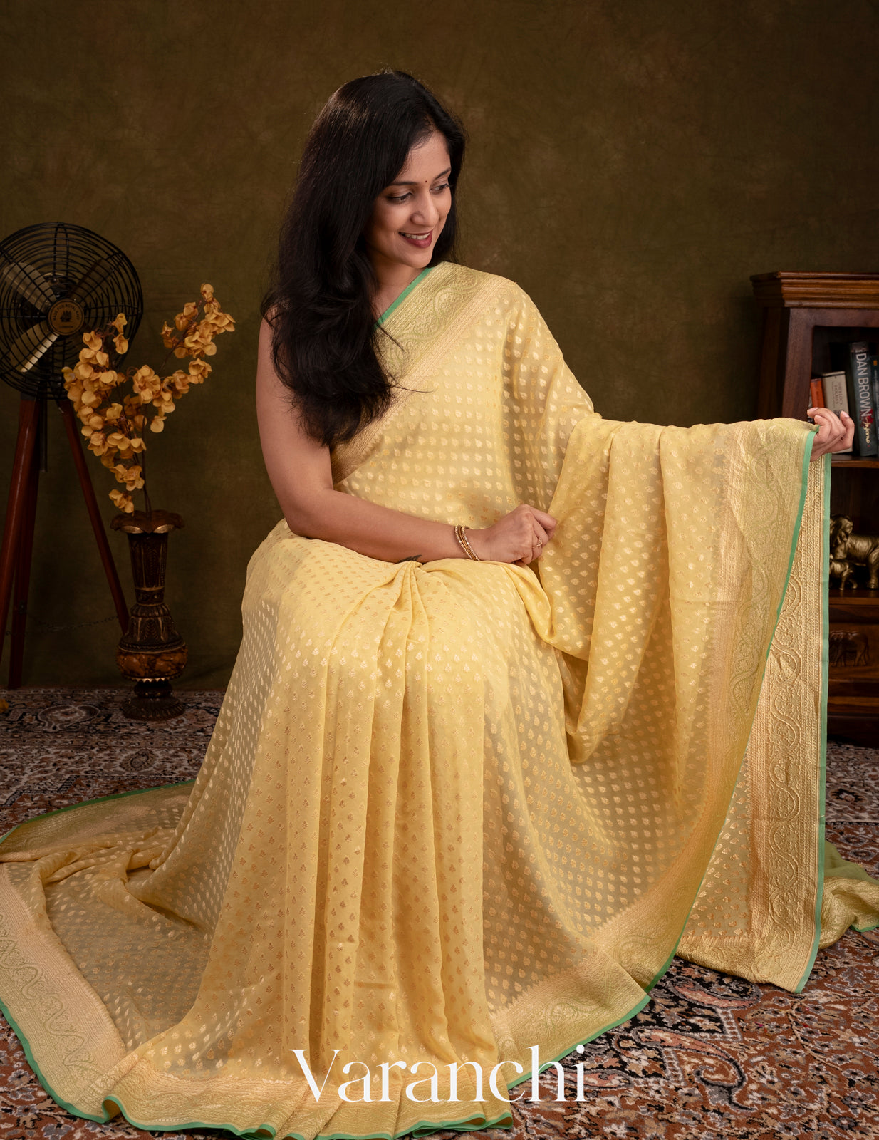 Pastel Yellow Pure Georgette Silk Handloom Saree