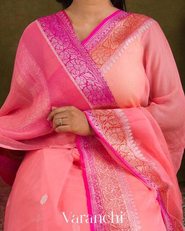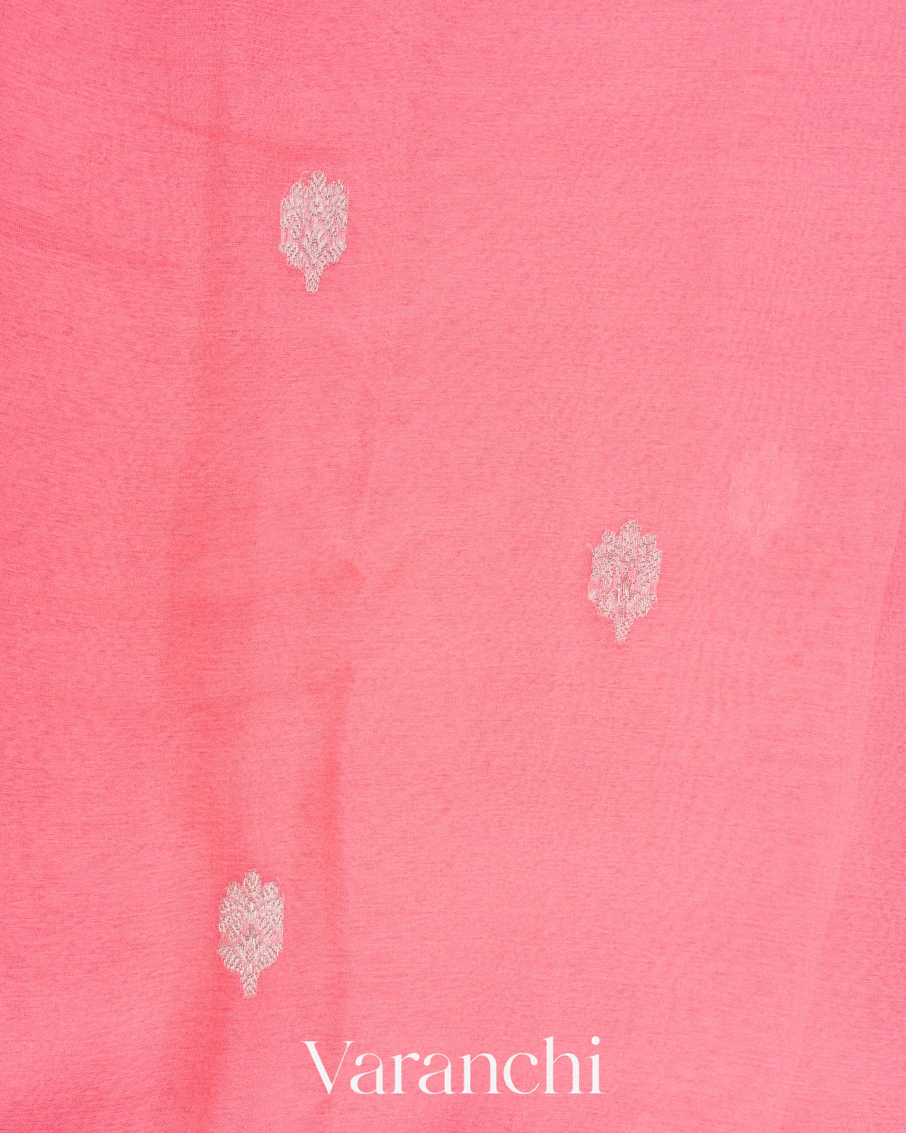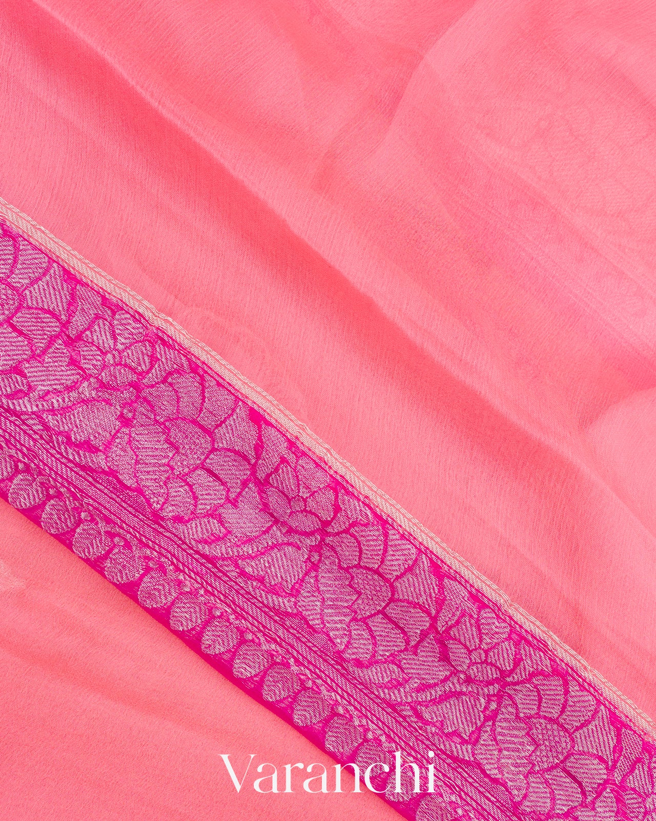 Peach Rose Pure Chiffon Silk Handloom Saree