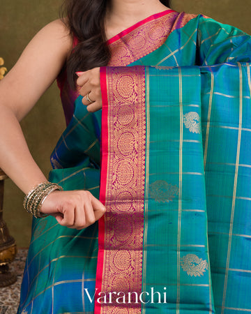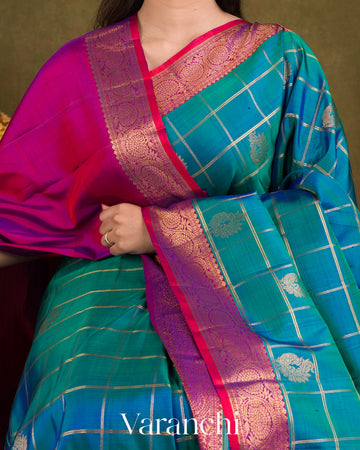 Peacock Blue Pure Kanchipuram Silk Handloom Saree
