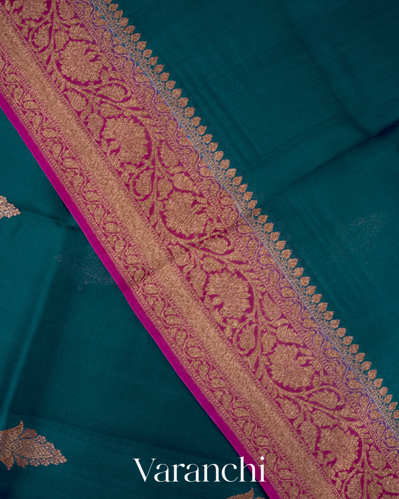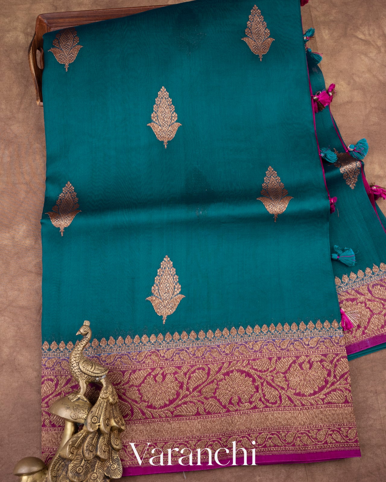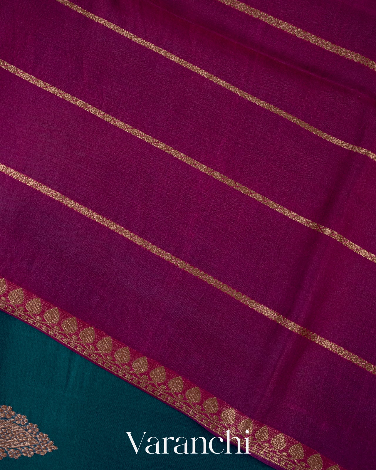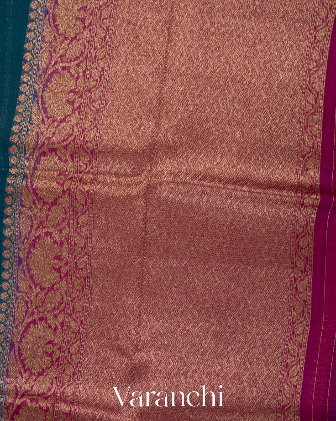 Blouse Piece Included in Magenta Colour with Antique Zari Stripes (1 mt. approx) |