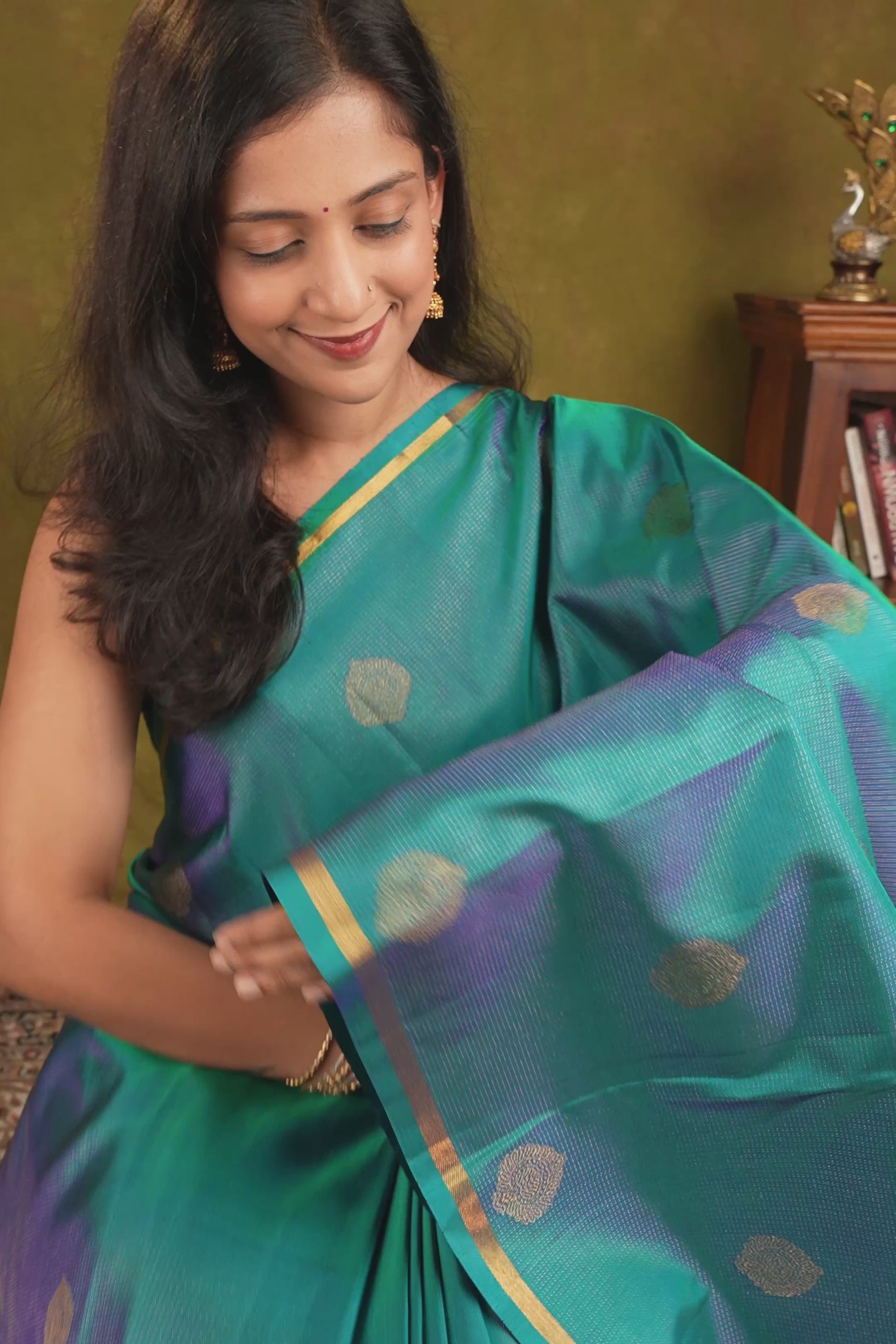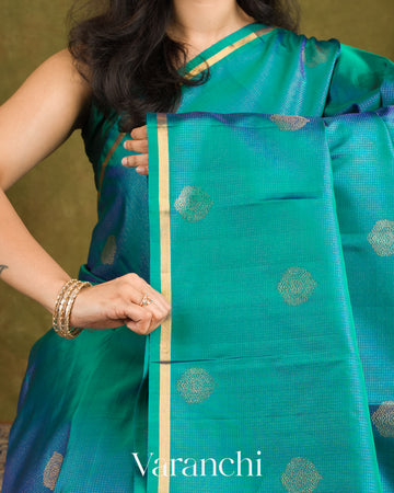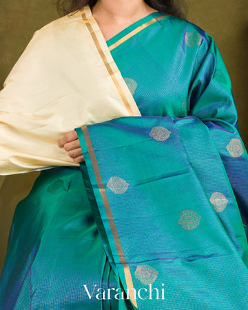 Peacock Blue Vaira Oosi Pure Kanchipuram Silk Handloom Saree