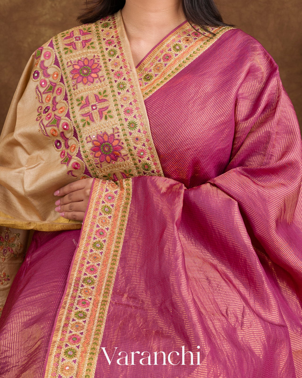 Blouse Piece Included in Beige Colour with Mirror Embroidery (1 mt. approx) |
