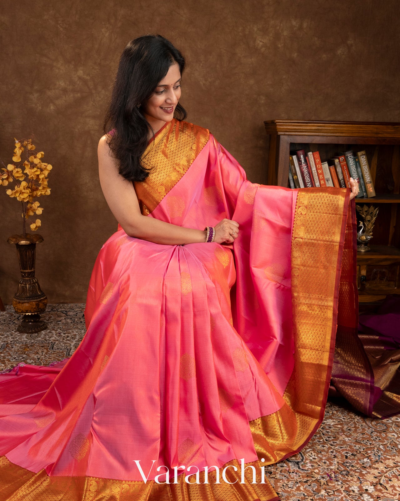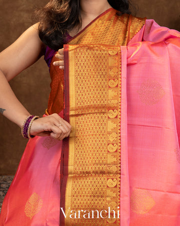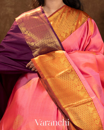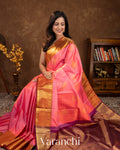 Flamingo Pink Vaira Oosi Pure Kanchipuram Silk Handloom Saree