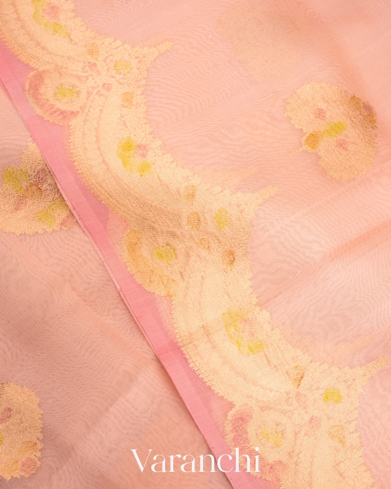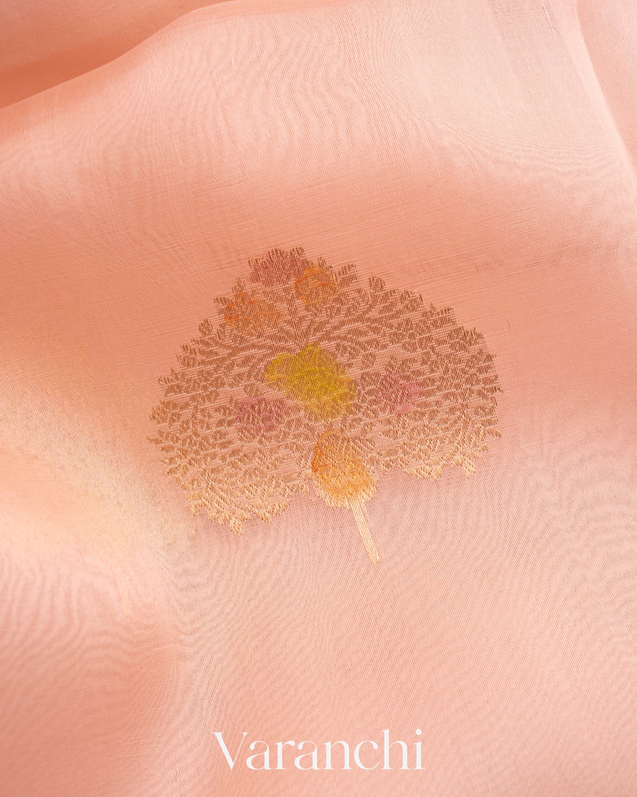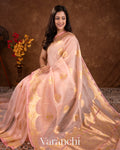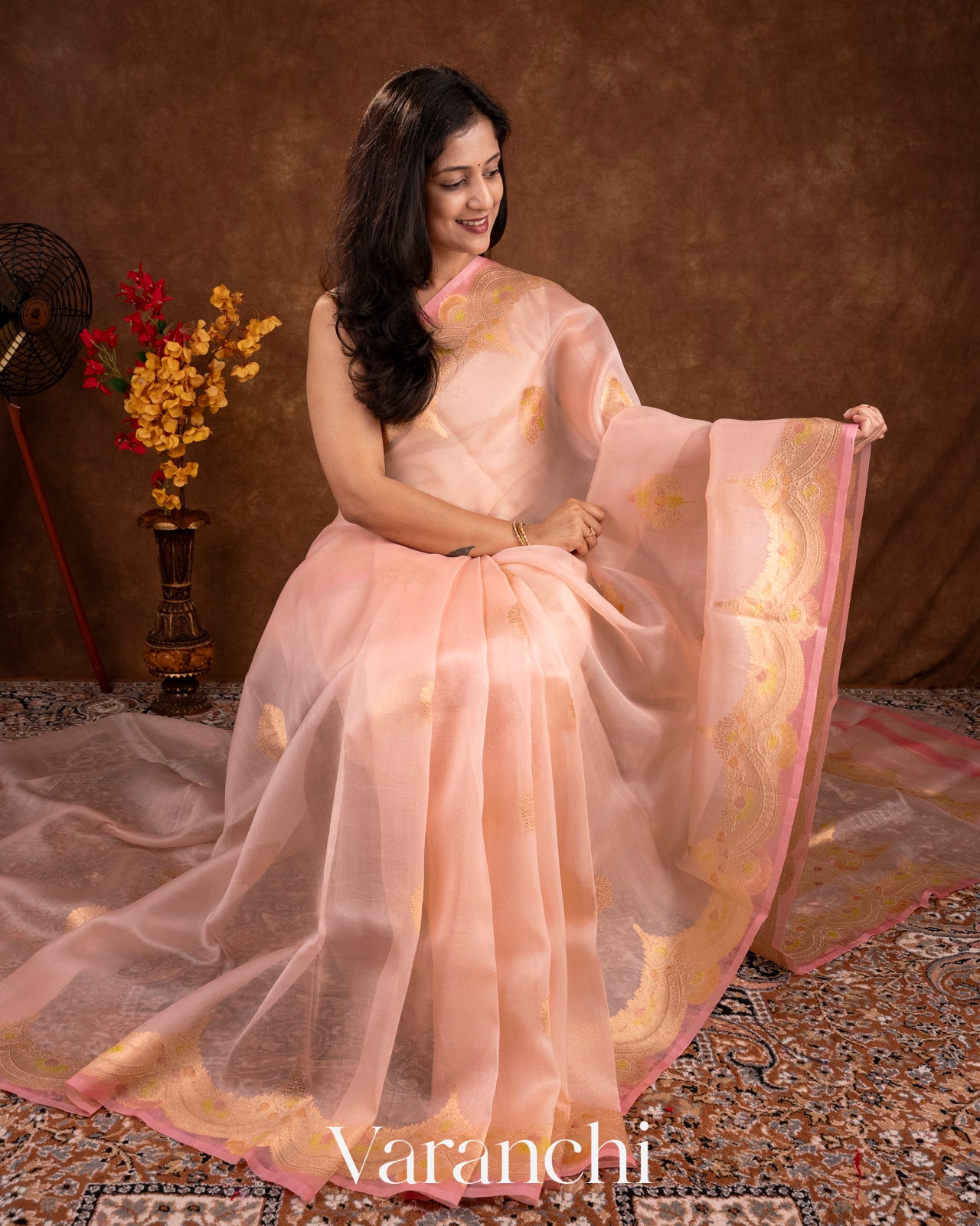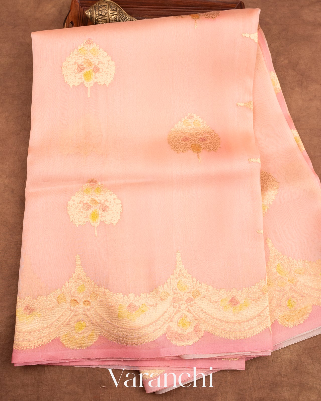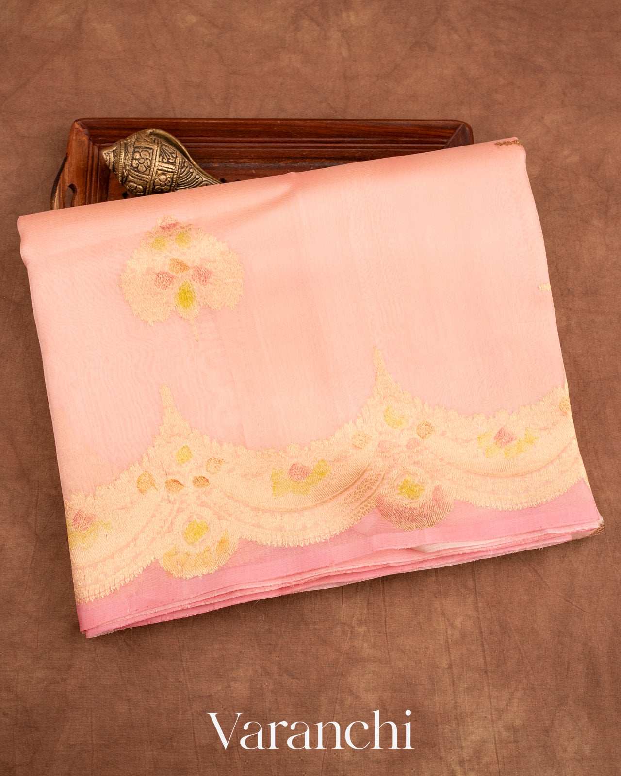 Baby Pink Reverse Scalloped Border Pure Kora Silk Handloom Saree