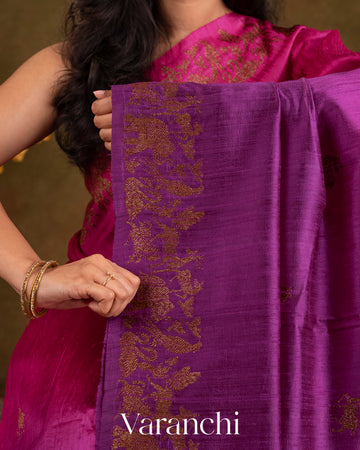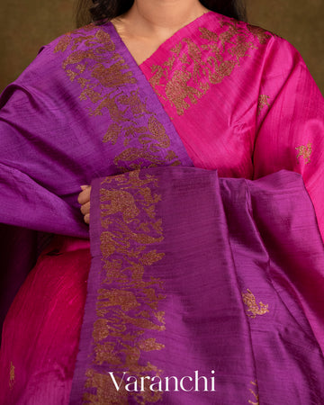 Purple and Rani Pink Ombre-Dyed Raw Silk Handloom Saree
