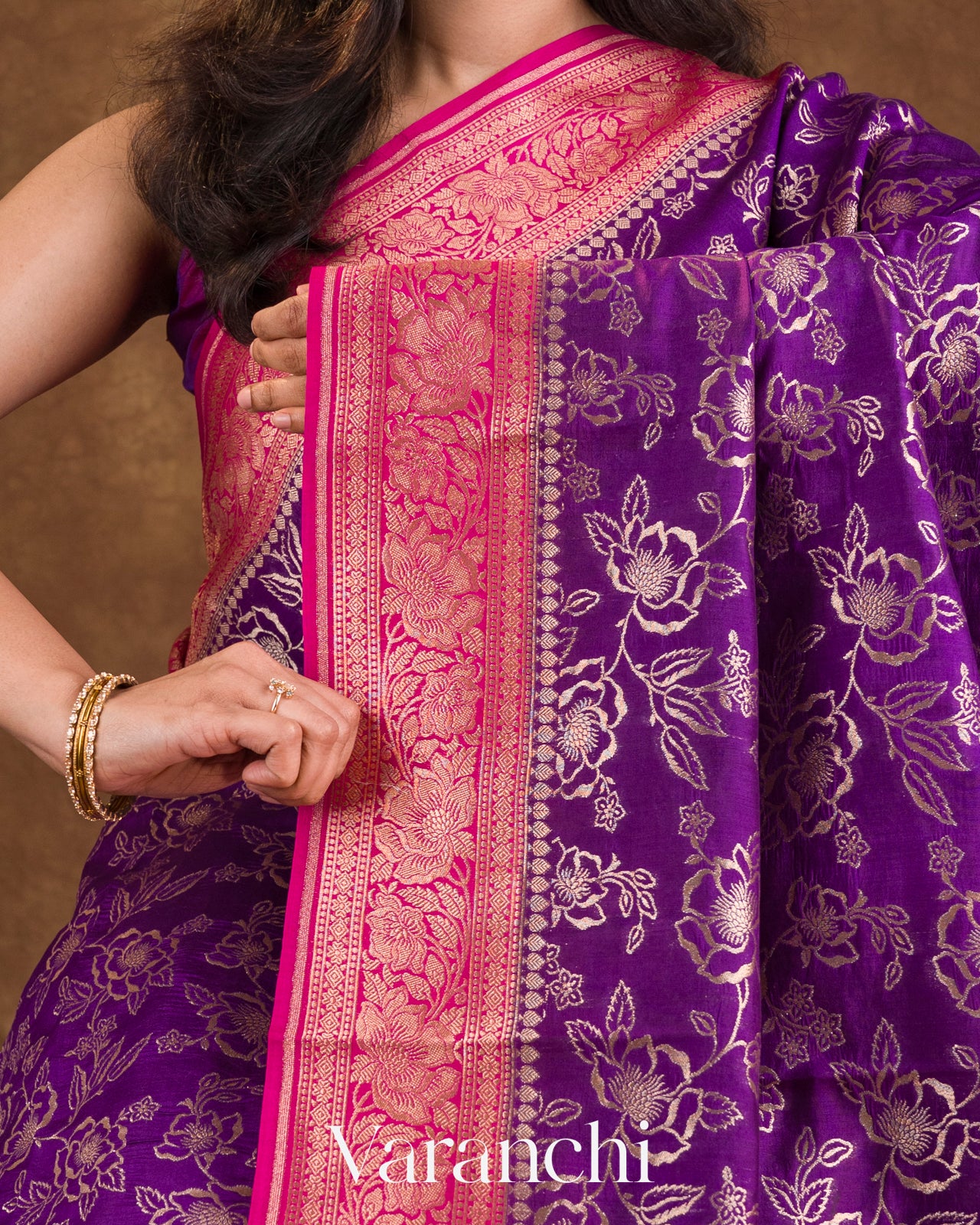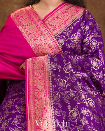 Purple Floral Brocade Pure Chiniya Silk Saree