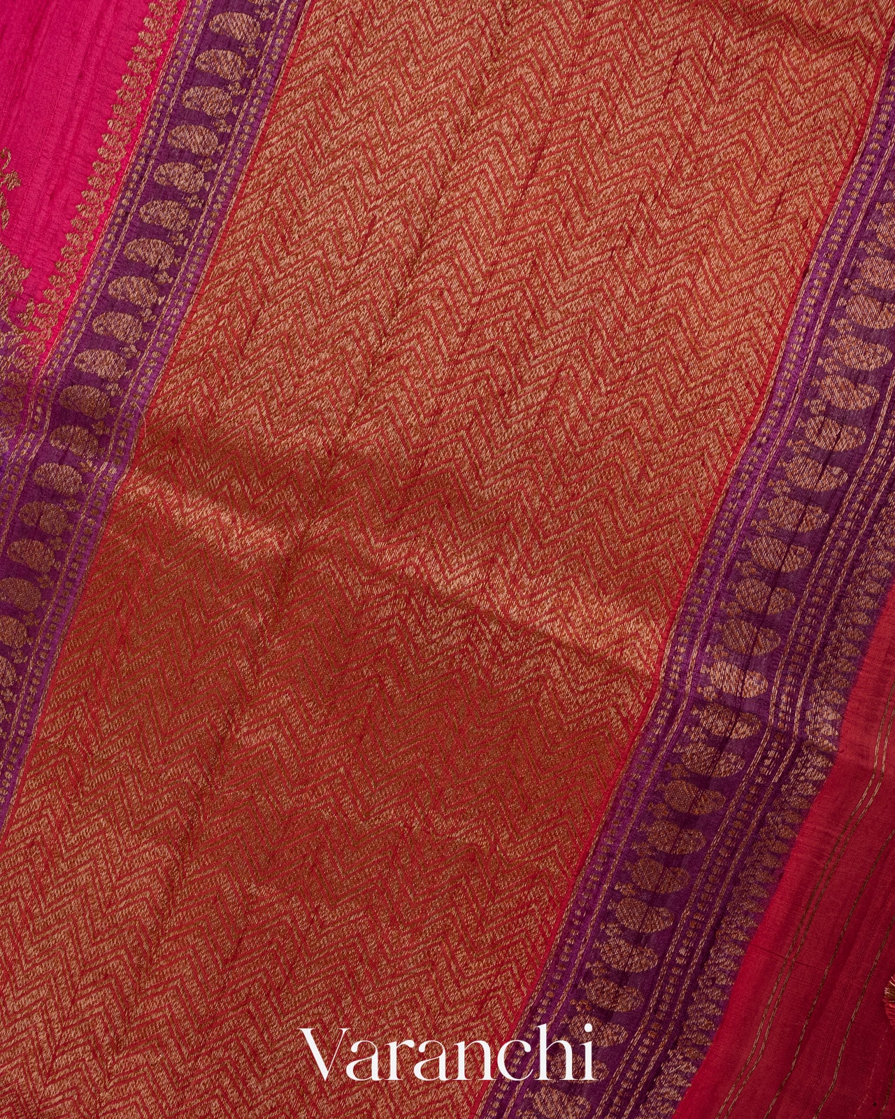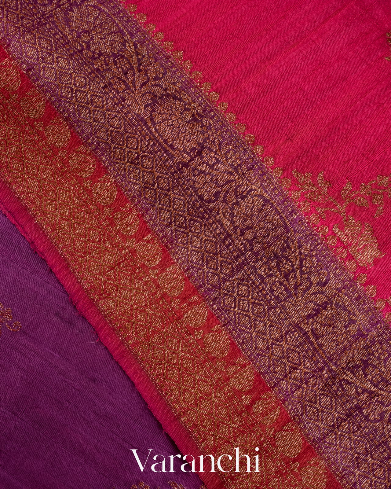 Purple Tricolour Rangkaat Pure Raw Silk Handloom Saree