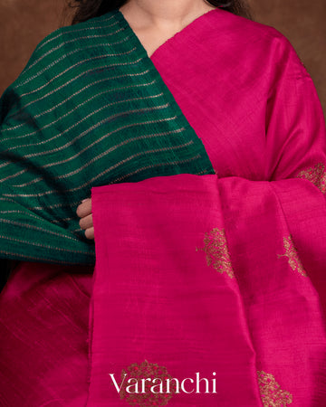 Blouse Piece Included in Rama Green Colour with Antique Zari Striped Pattern (1 mt. approx) |