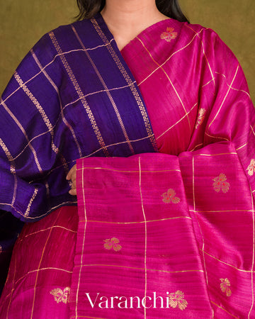 Rani Pink Checks Pure Raw Silk Handloom Saree