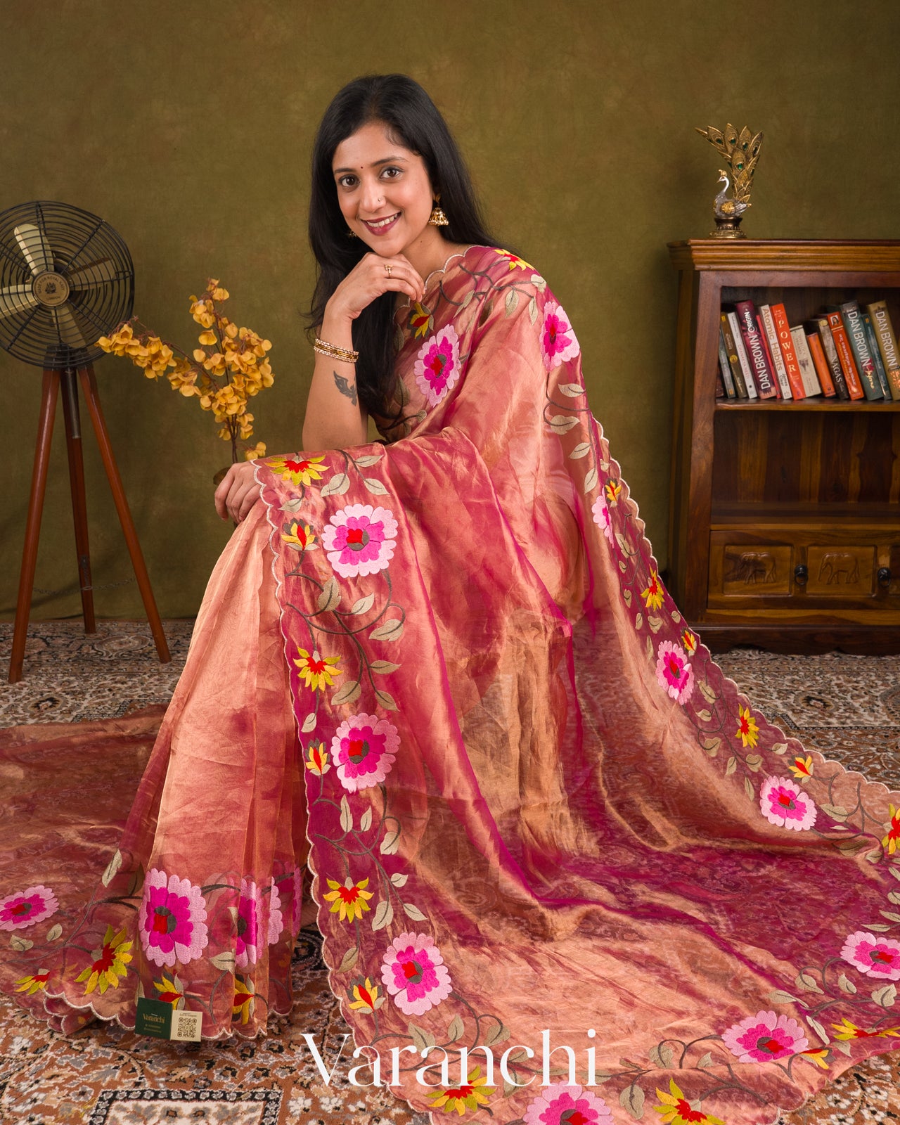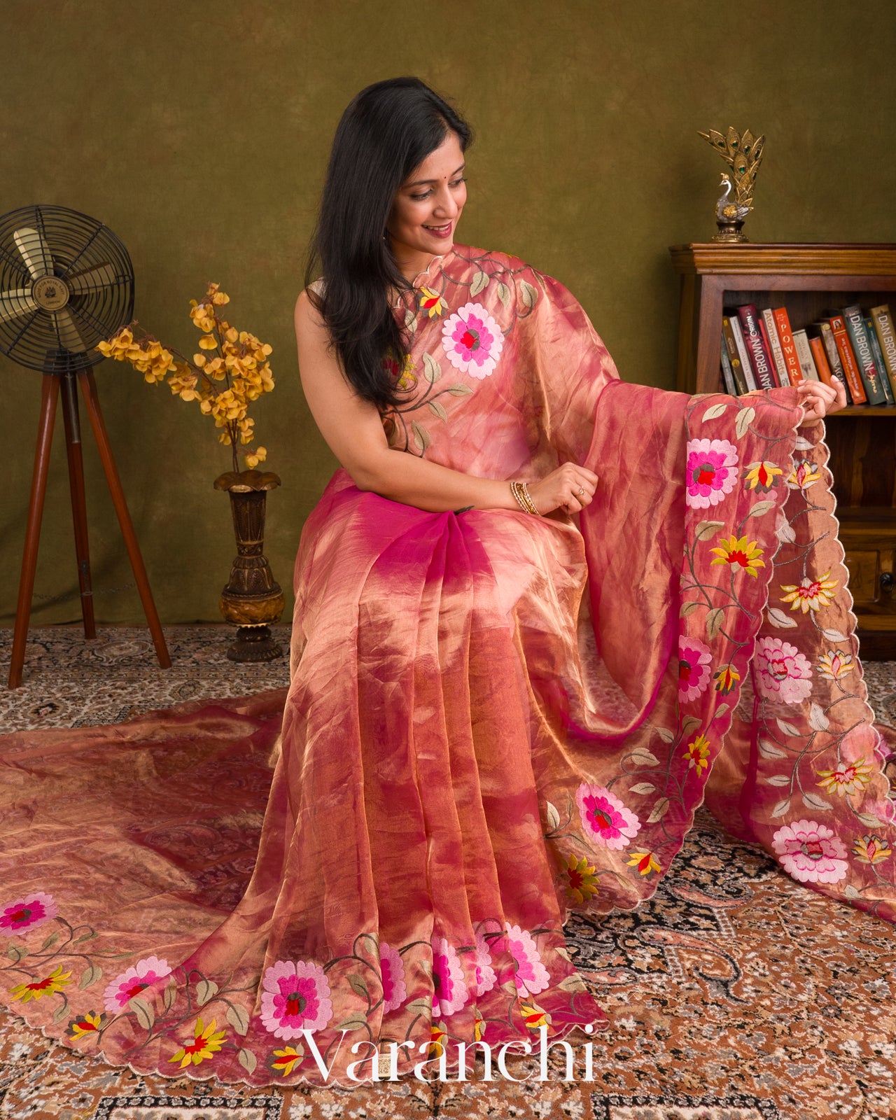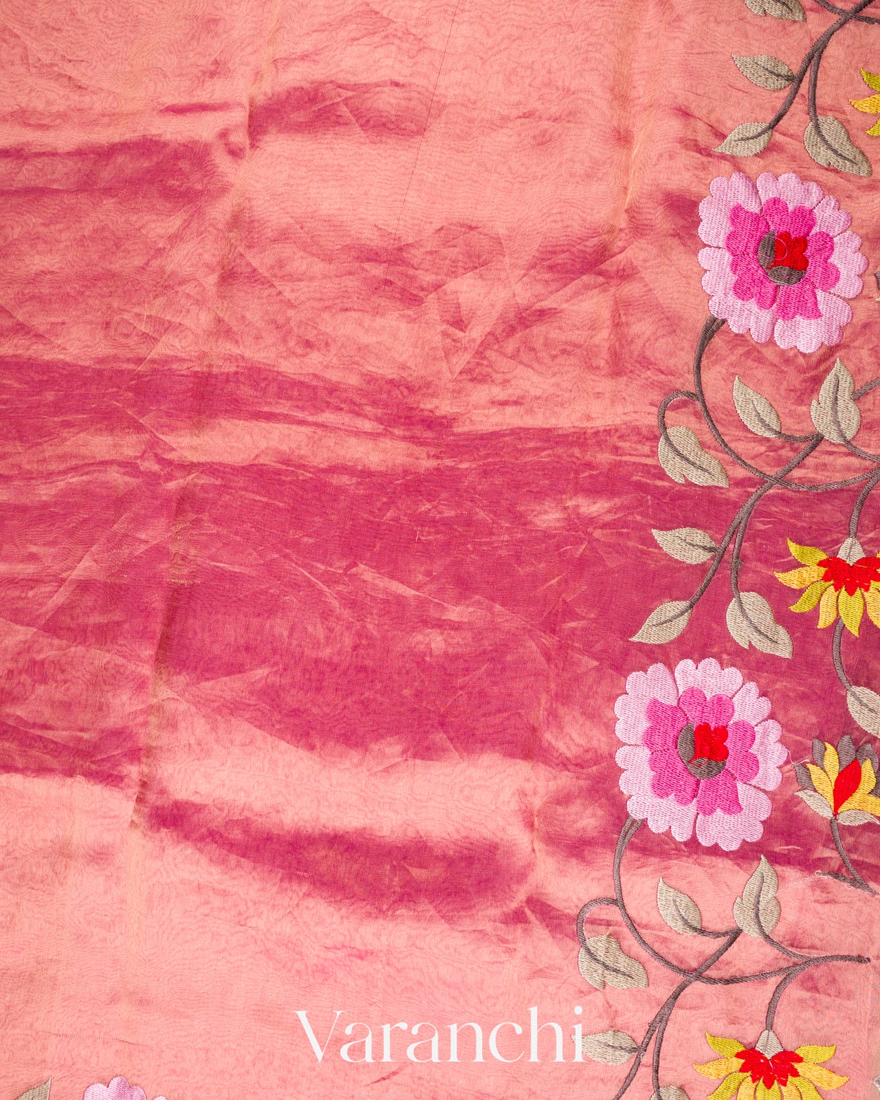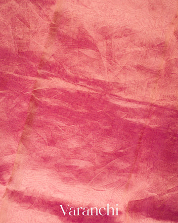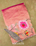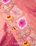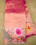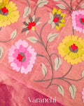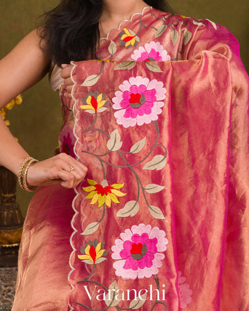 Rani Pink Floral Embroidered Pure Tissue Kora Silk Saree