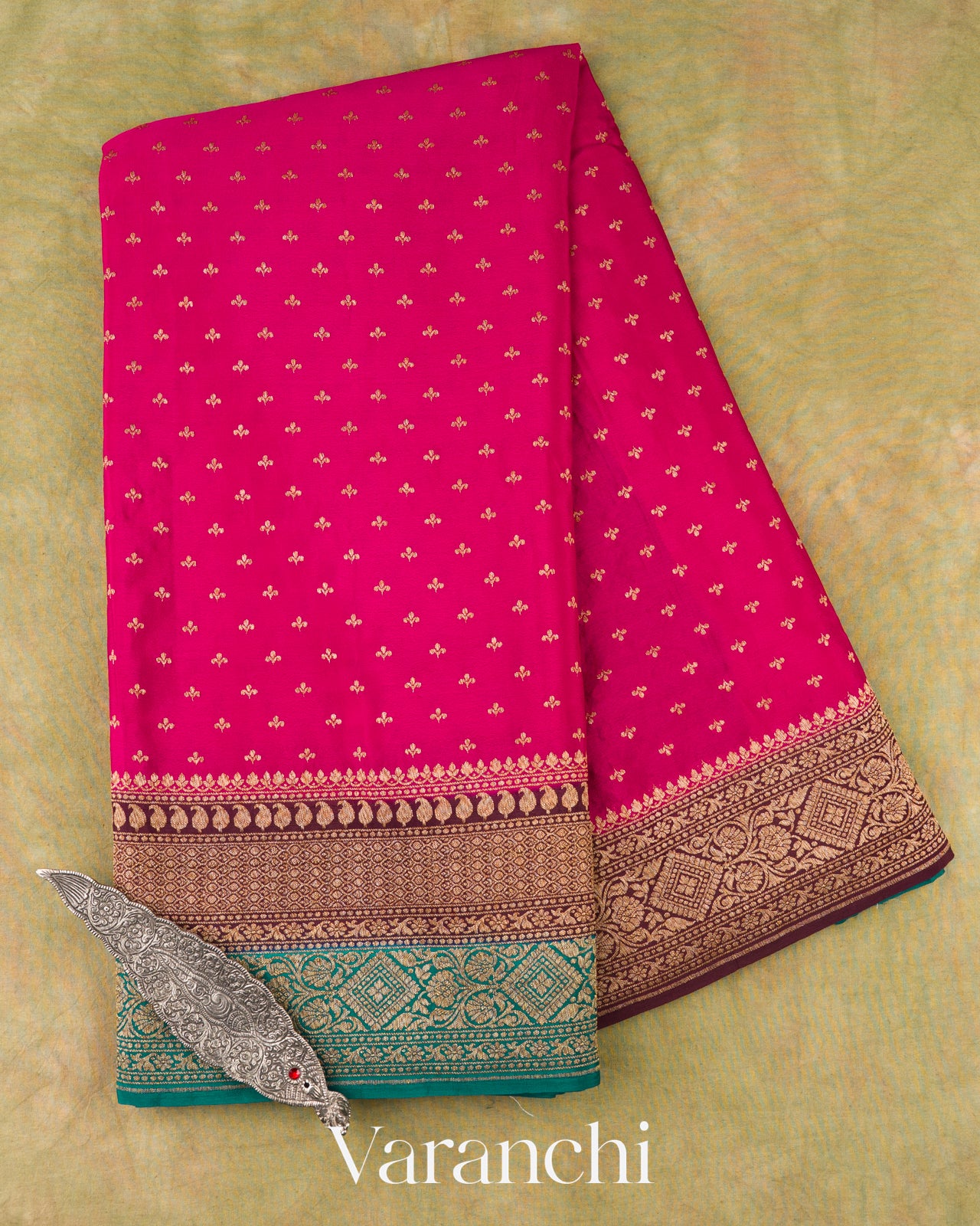 Rani Pink Pure Crepe Silk Handloom Saree