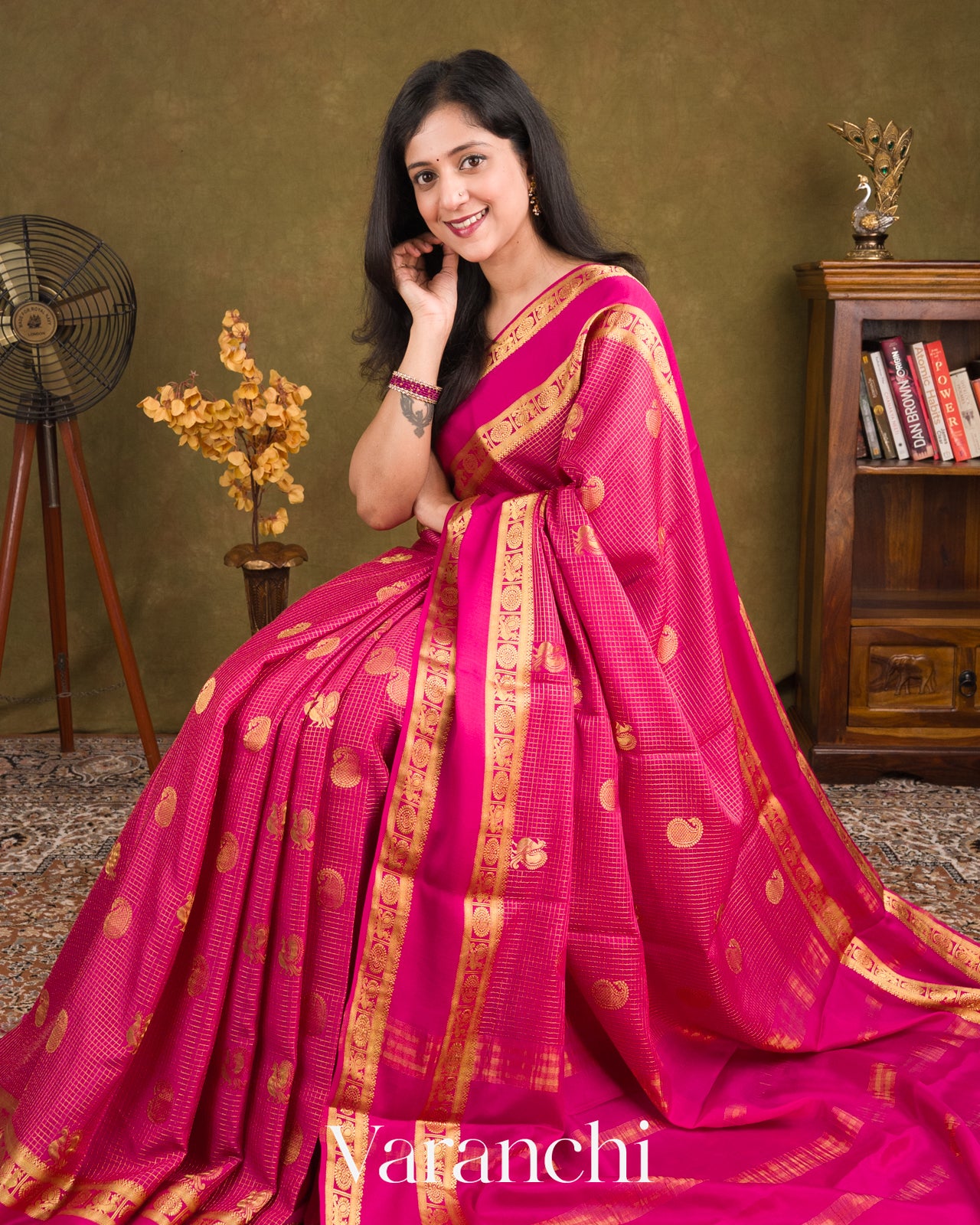 Rani Pink Pure Mysore Crepe Silk Saree