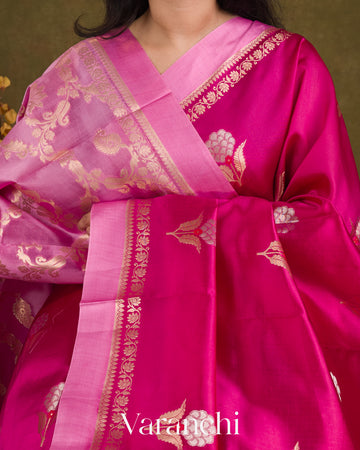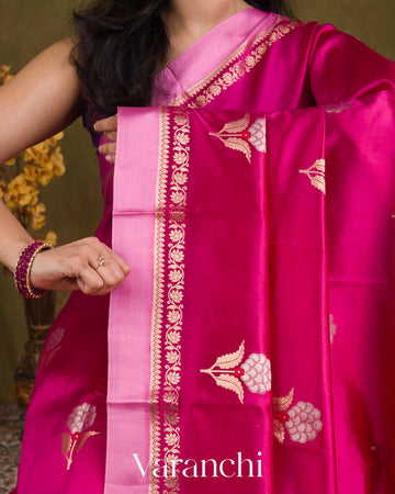 Blouse Piece Included in Rose Pink Colour with Watergold Zari Jaal Pattern (1 mt. approx) |