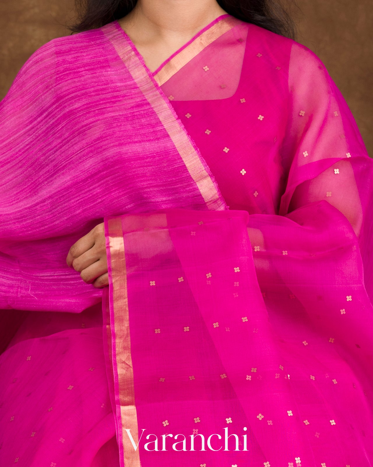 Rani Pink with Sequin Embroidery Pure Muslin Silk Handloom Saree