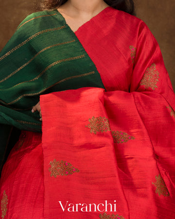 Blouse Piece Included in Bottle Green Colour With Antique Zari Stripes (1 mt. approx) |