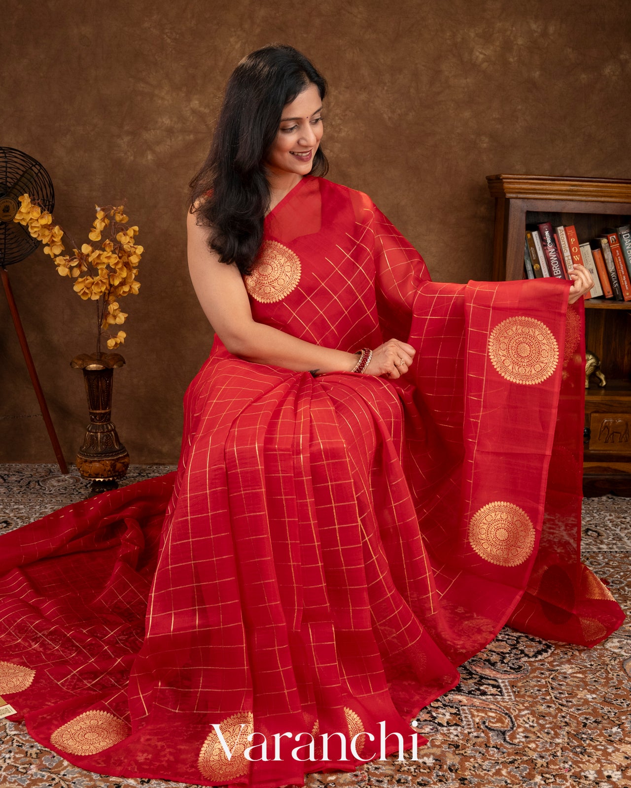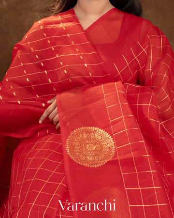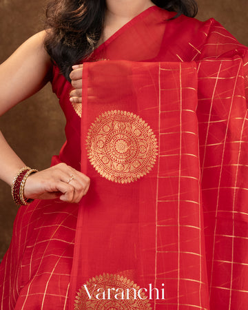 Blouse Piece Included in Self-Colour with Zari Butta Stripes (1 mt. approx) |