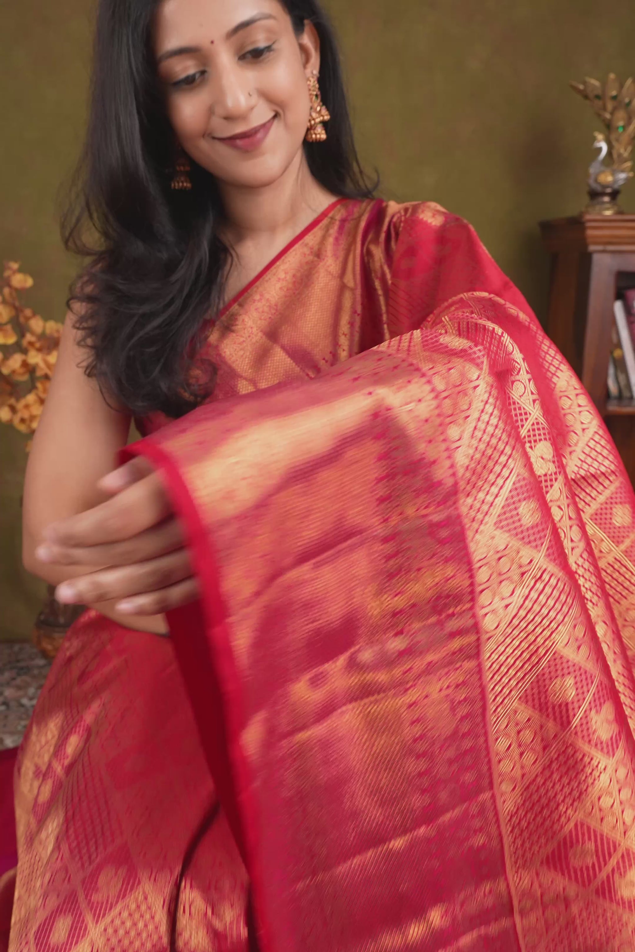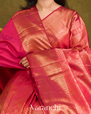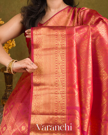 Reddish Pink Heavy Brocade Pure Kanchipuram Silk Handloom Saree