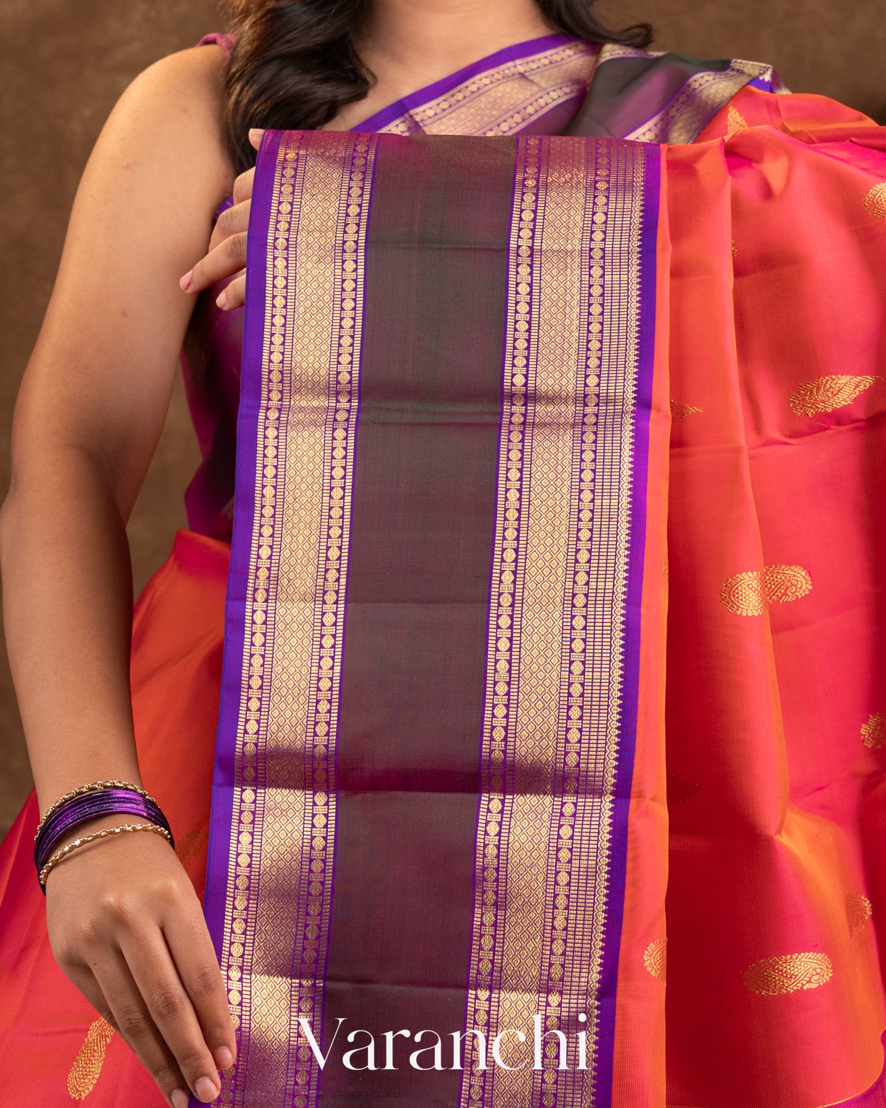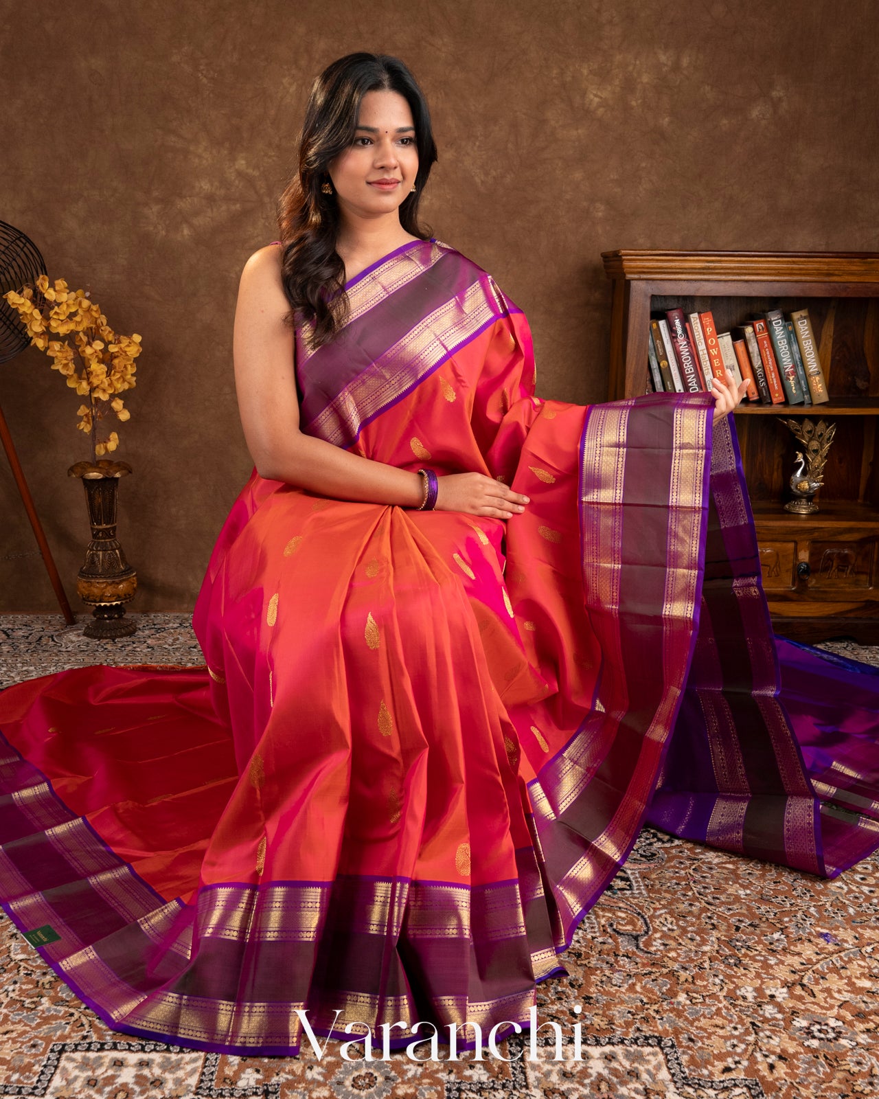 Reddish Pink Pure Kanchipuram Silk Handloom Saree